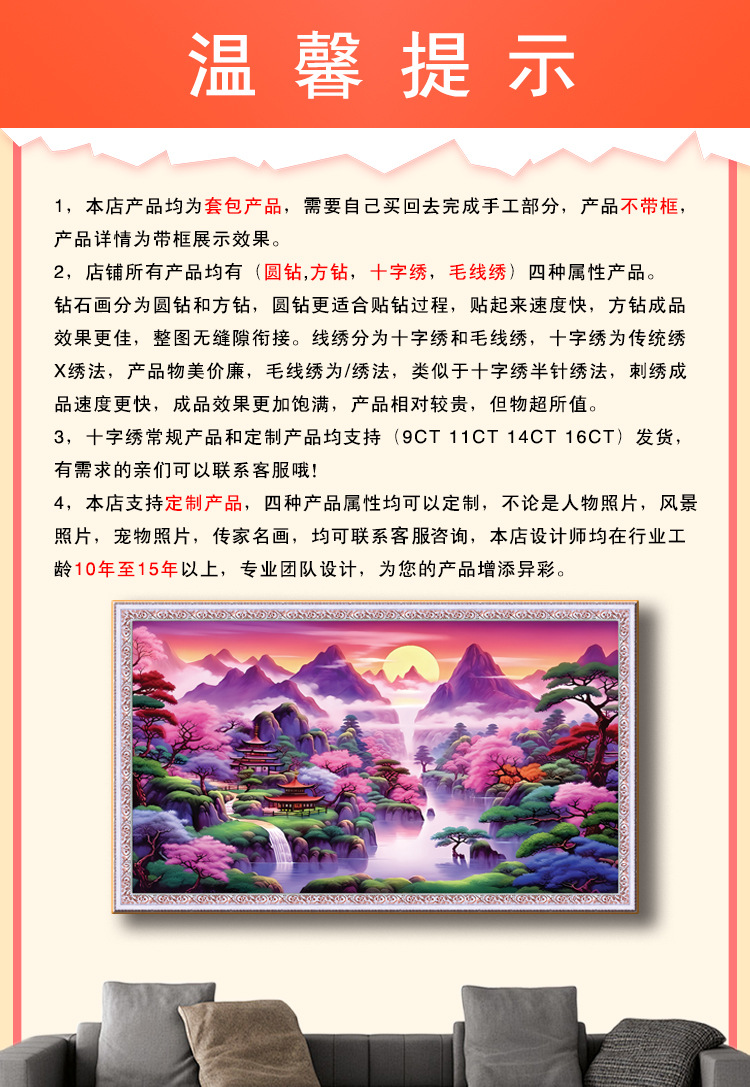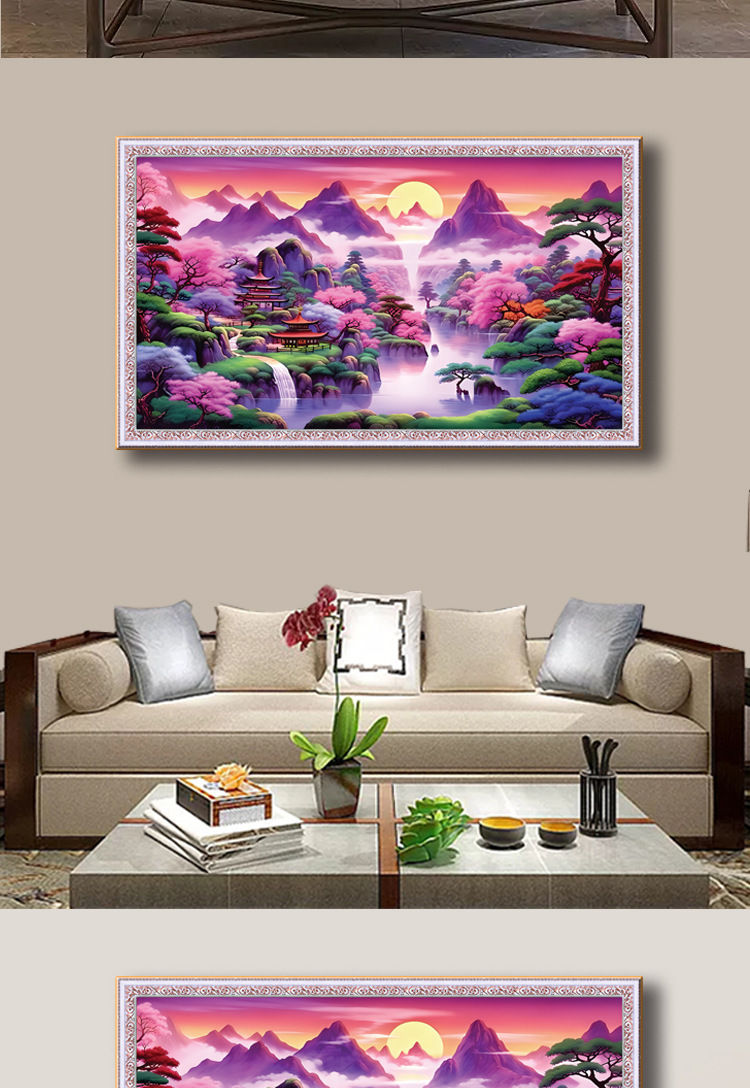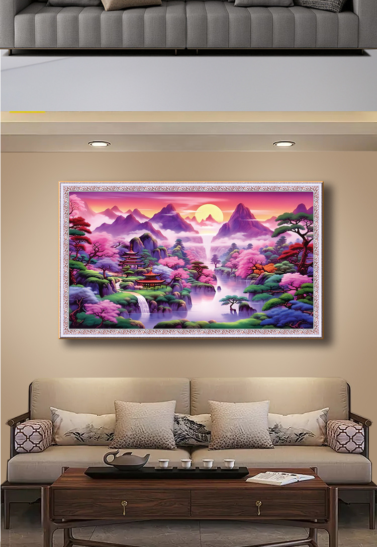 紫気東来旭日東昇十字刺繍新客間書斎線刺繍自分刺繍風景十字刺繍