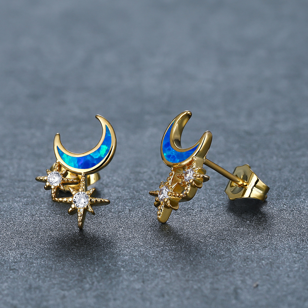 ヨーロッパとアメリカの対称オパールスタームーンマイクロ象嵌ジルコンイヤリング女性用、絶妙なコールドスタイル、多用途の売れ筋イヤリング卸売