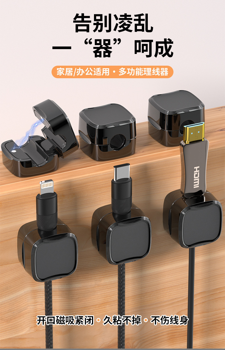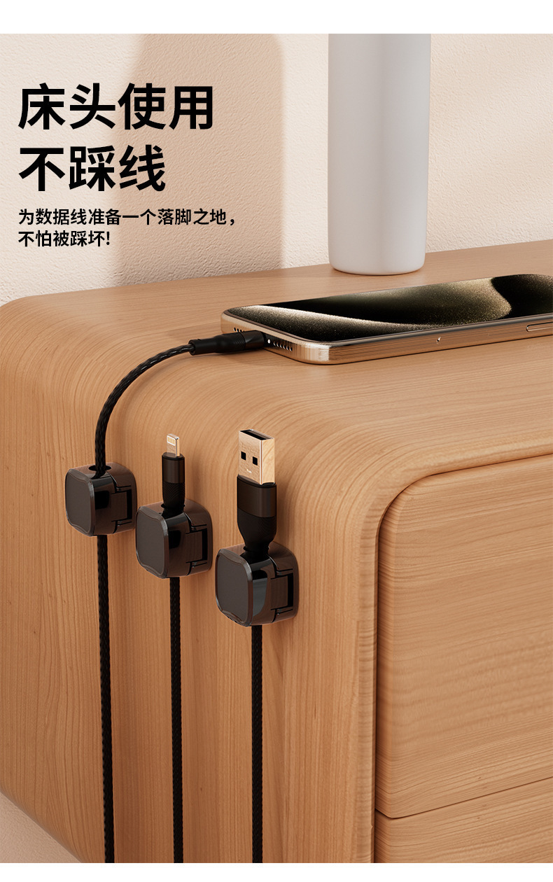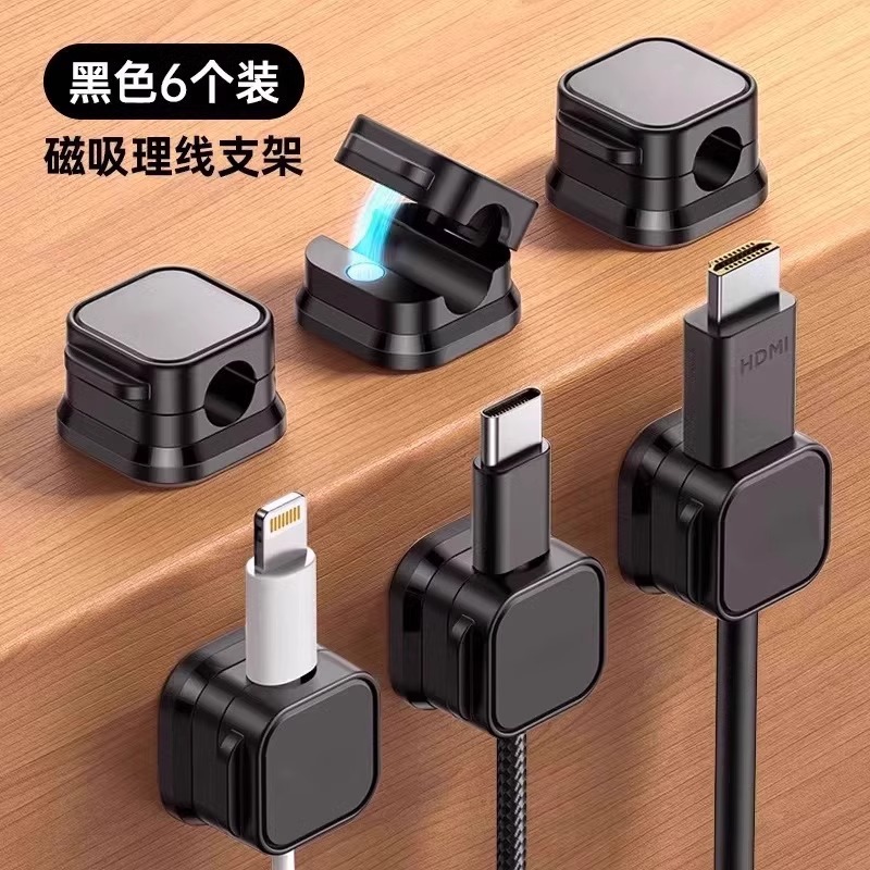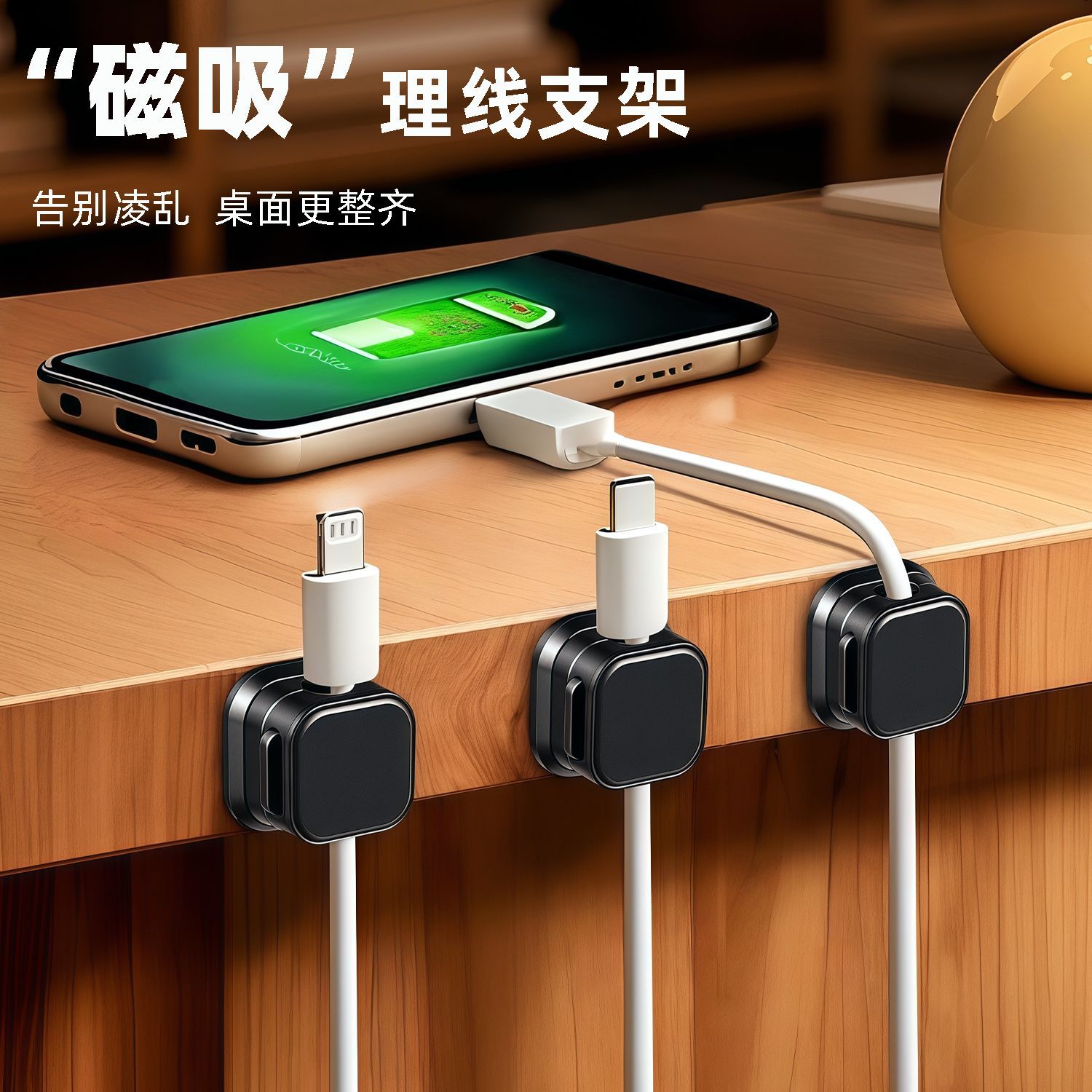 数据线磁吸理线器桌面壁挂手机充电线收纳固定器走线卡扣插头挂钩