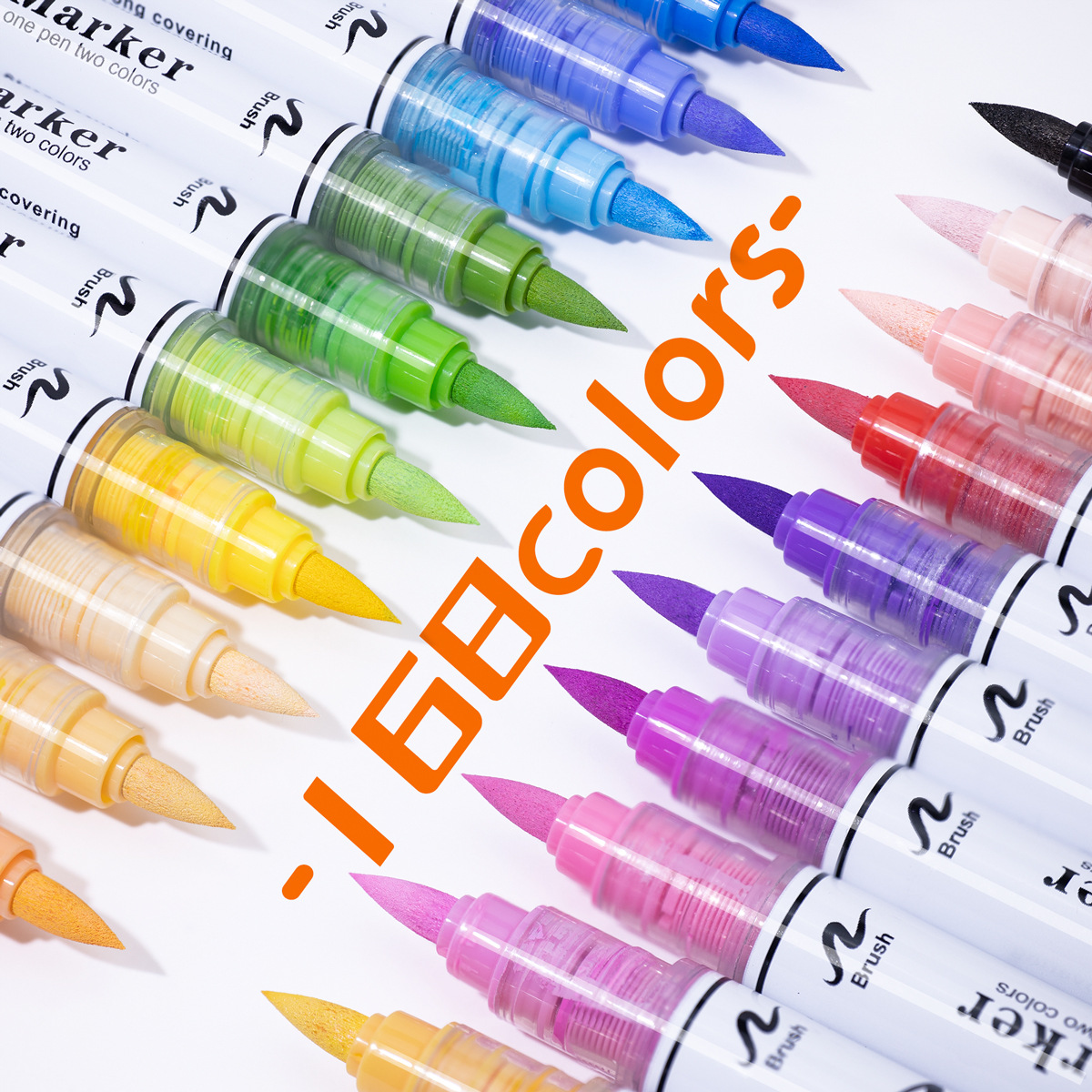広納8106ダブルカラー直液式ソフトヘッドアクリルマーカー168色不透色畳色美術ペン
