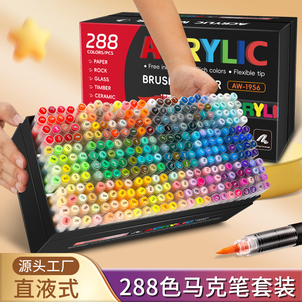 跨境直液式丙烯马克笔288色软头免按压学生美术diy手绘绘画涂鸦笔