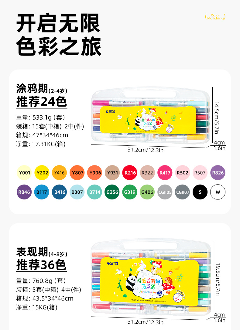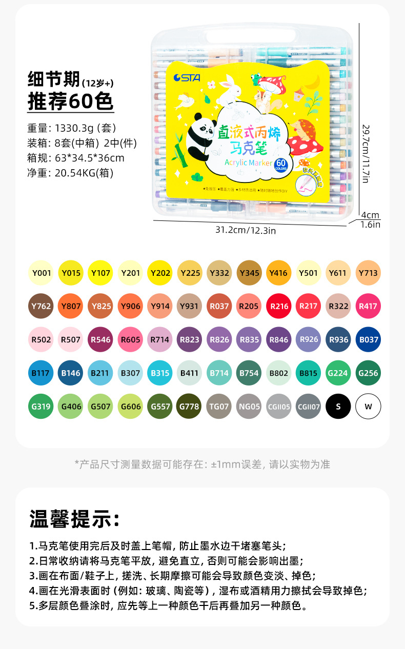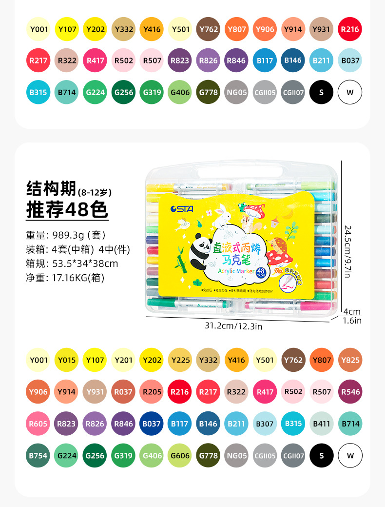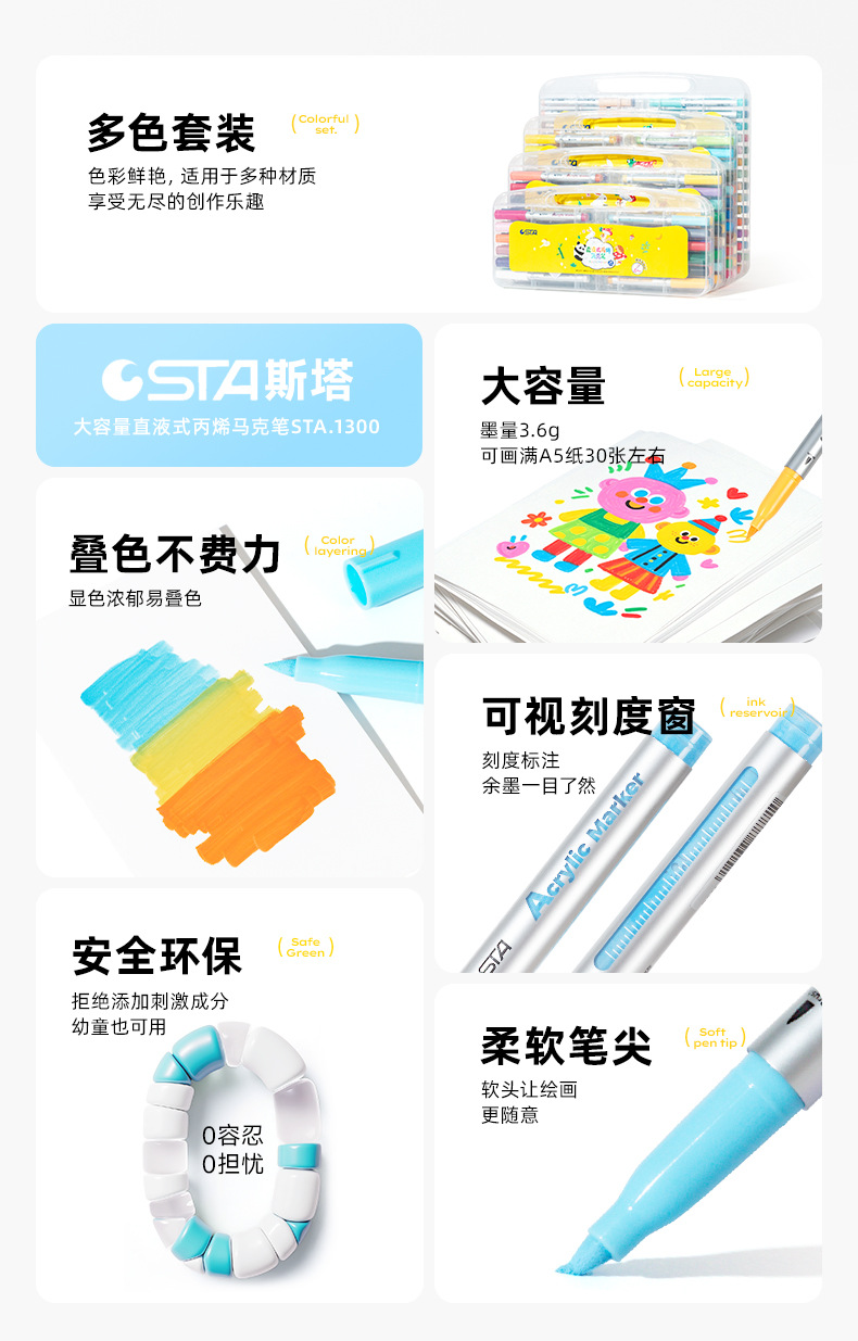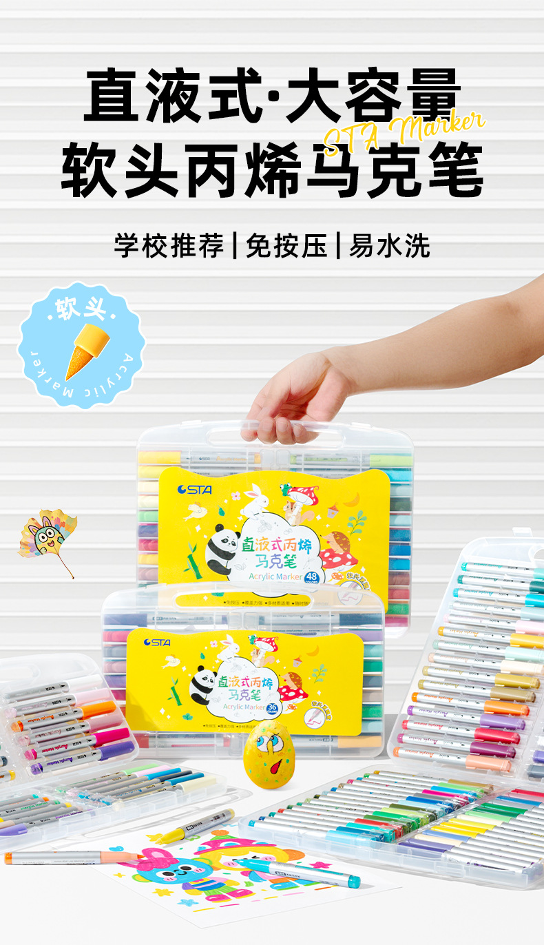 斯塔STA1301大容量直液式丙烯马克笔儿童美术绘画涂鸦水性记号笔