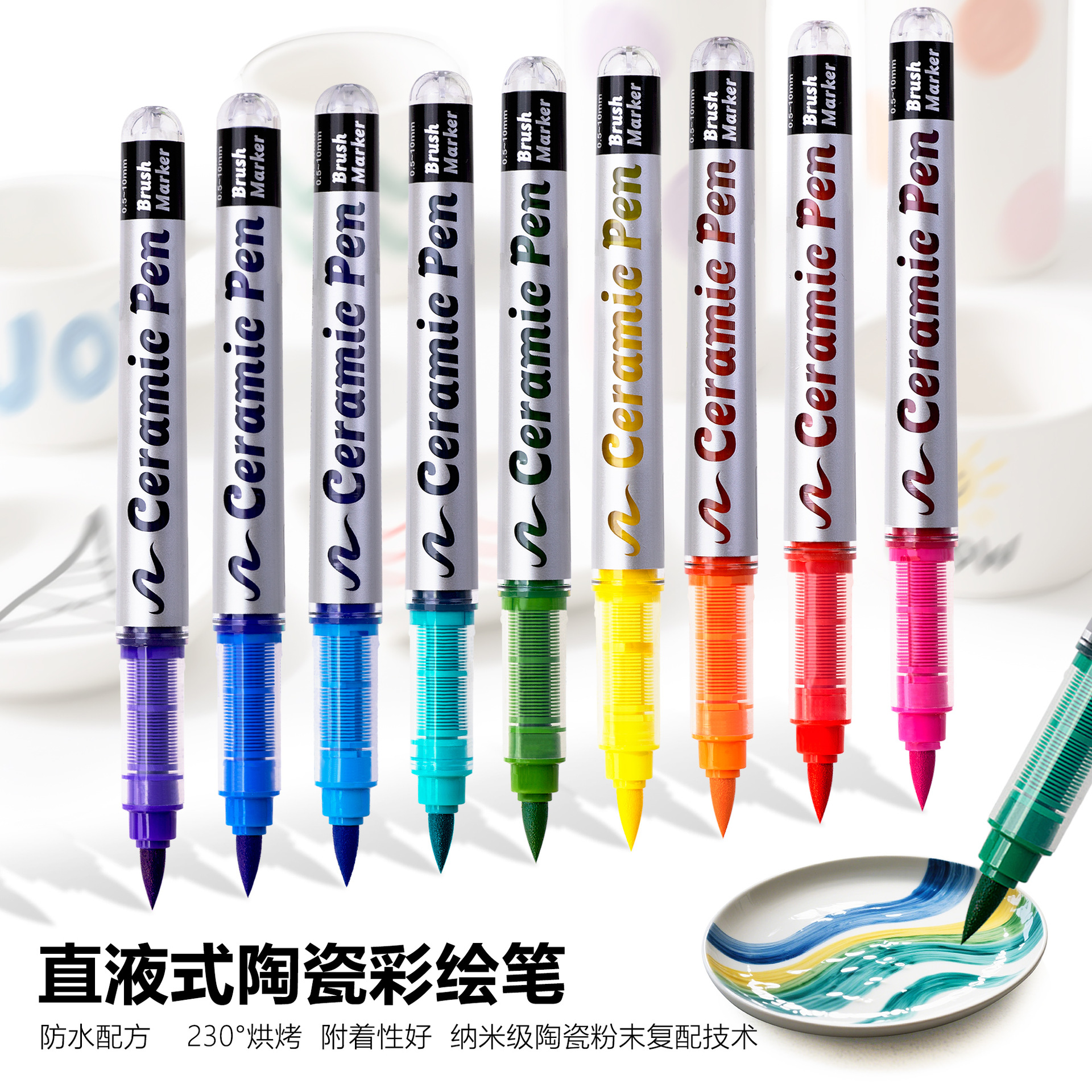 广纳6662直液式软头陶瓷绘画笔套装12色DIY创意玻璃瓷器涂鸦软笔