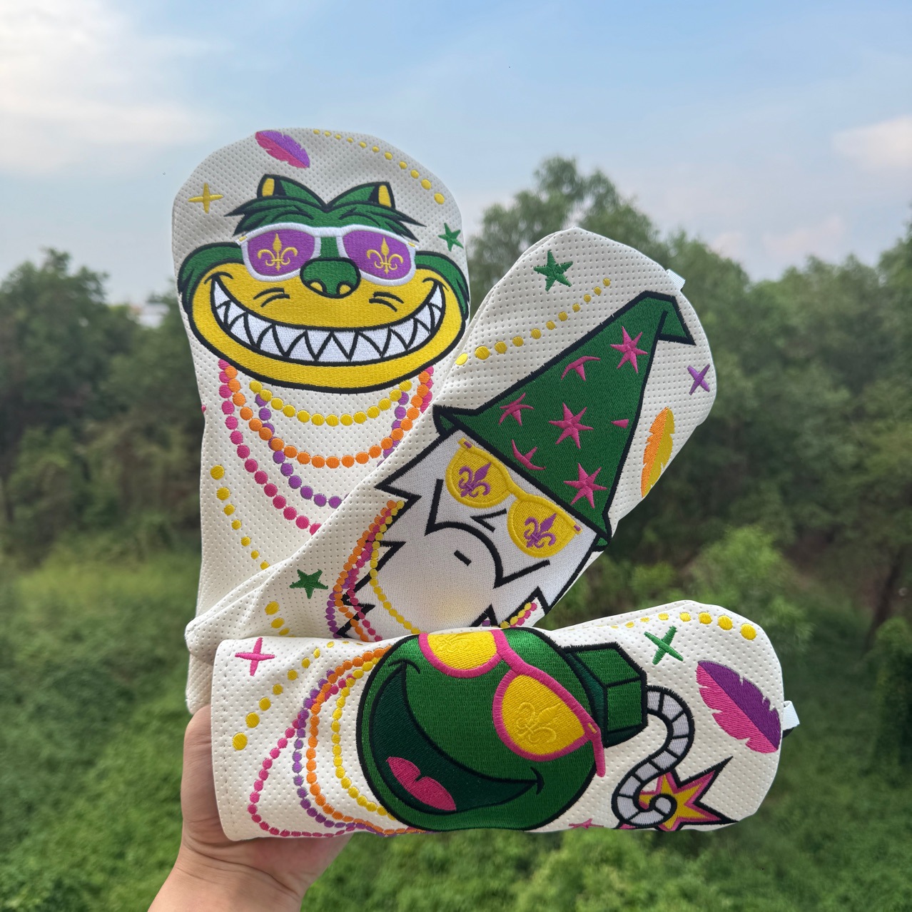 新しいクラブ保護カバー ゴルフパターカバー 笑顔柄クラブヘッドカバー マグネット開閉式ゴルフクラブカバー