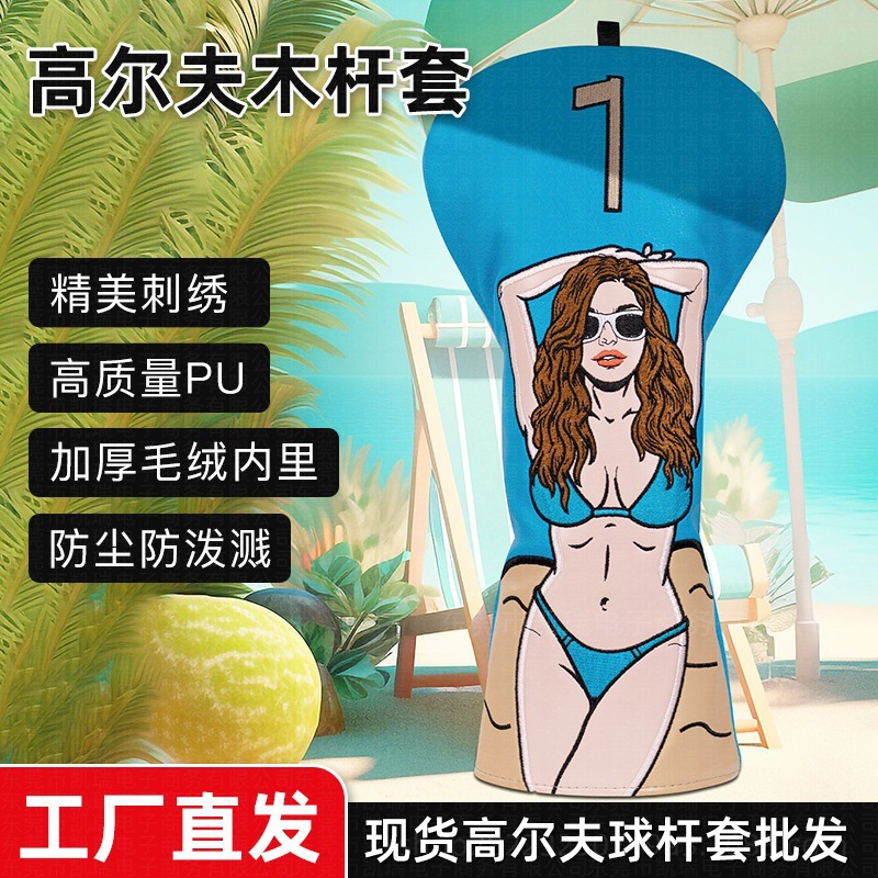 現物速髪ブルービキニ美女1号木帽子カバーゴルフヘッドカバーゴルフクラブカバー