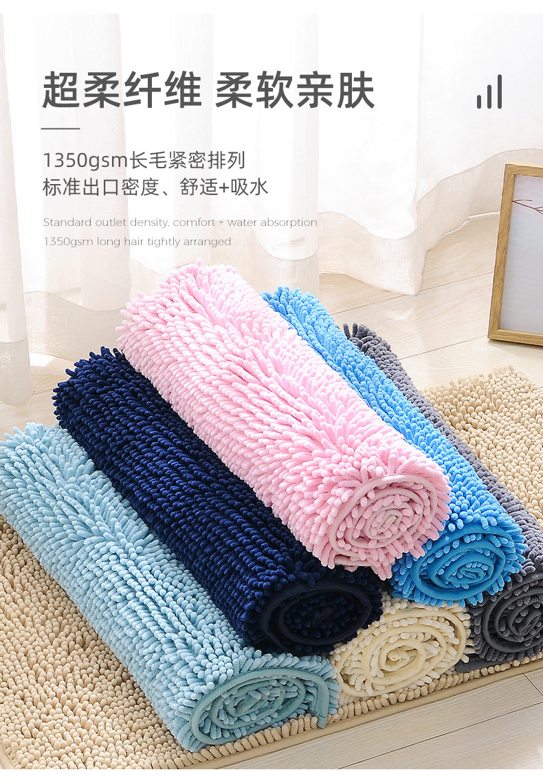 クロスボーダーホットメルトシェニール無地じゅうたん家庭マット室内浴室滑り止め長毛マット卸売り