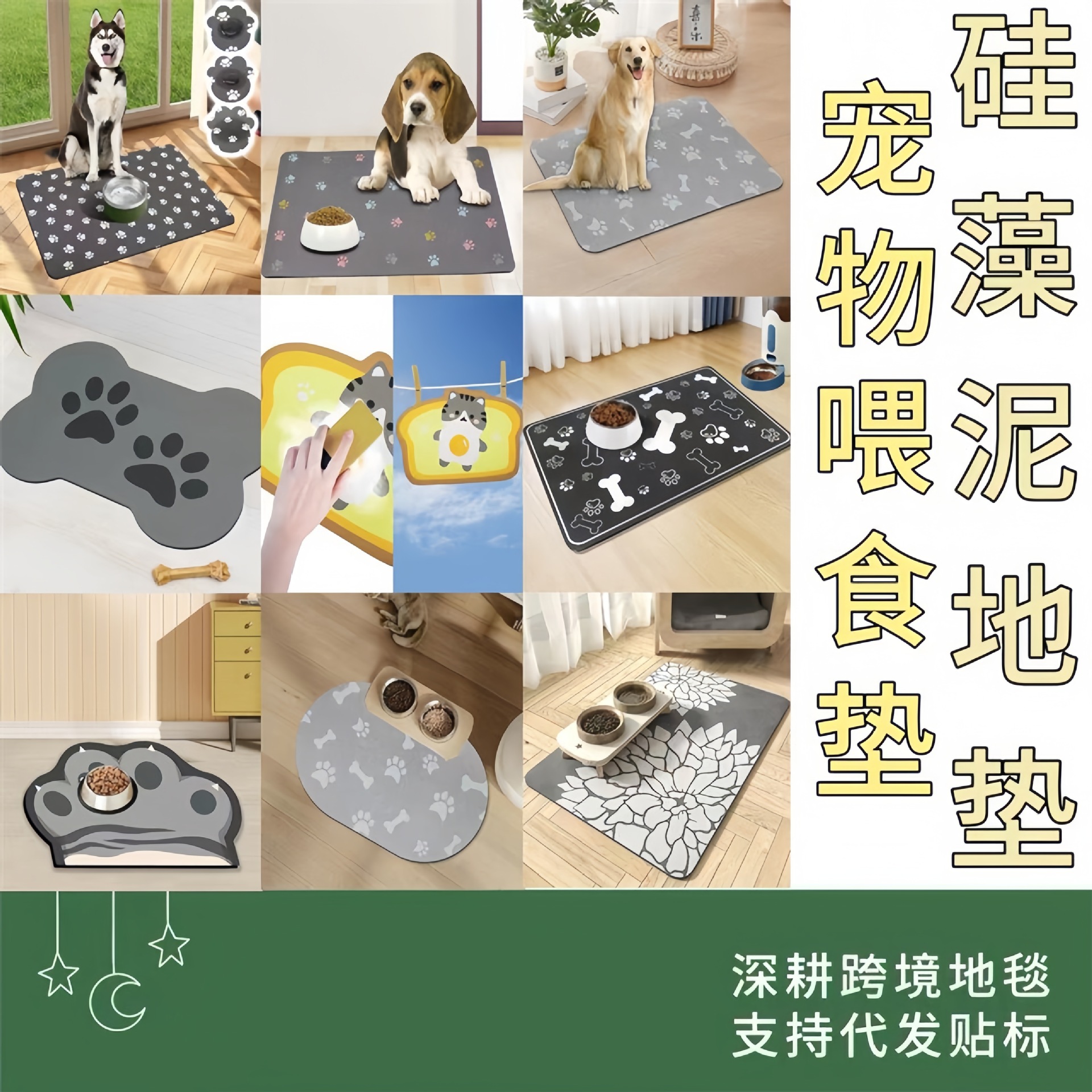 越境temuラベリング代発ペット猫犬食珪藻泥マット給餌防飛散マット吸水速乾マット