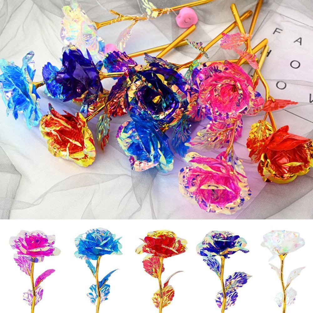 中国のバレンタインデーギフトカラフルなグレアフラワーローズゴールド箔フラワー発光カラーシミュレーションゴールド箔ローズブーケ