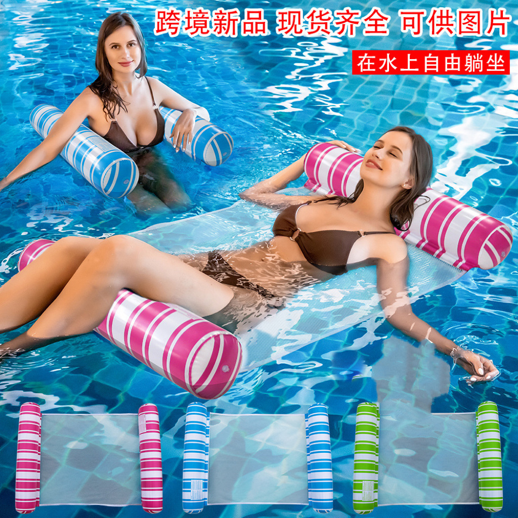 クロスボーダースポット円筒ストライプインフレータブルフローティングメッシュリクライニングチェア折りたたみ背もたれインフレータブルベッド通気性折りたたみ式