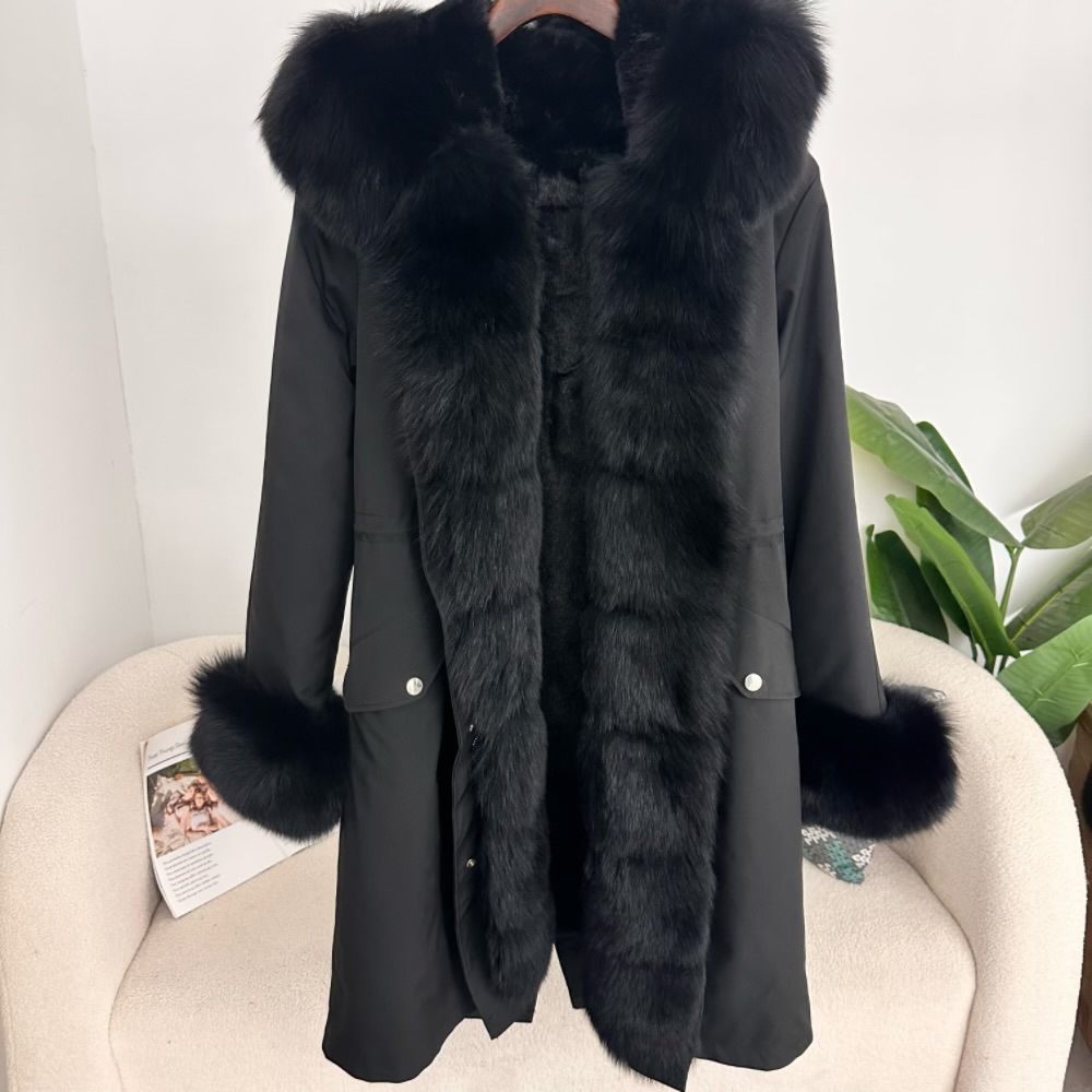 フリーサイズ (襟、前立て、袖口のファーはすべて本物のフォックスファー/ラクーンファーです)