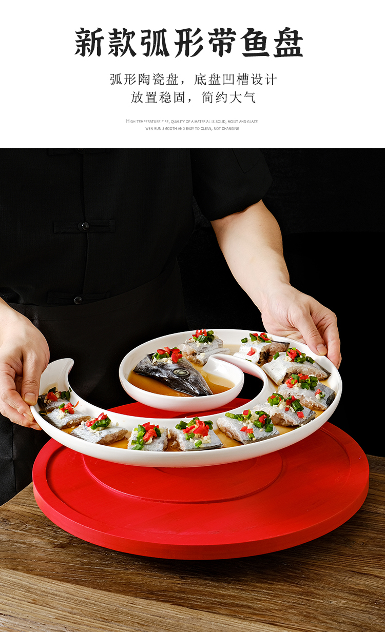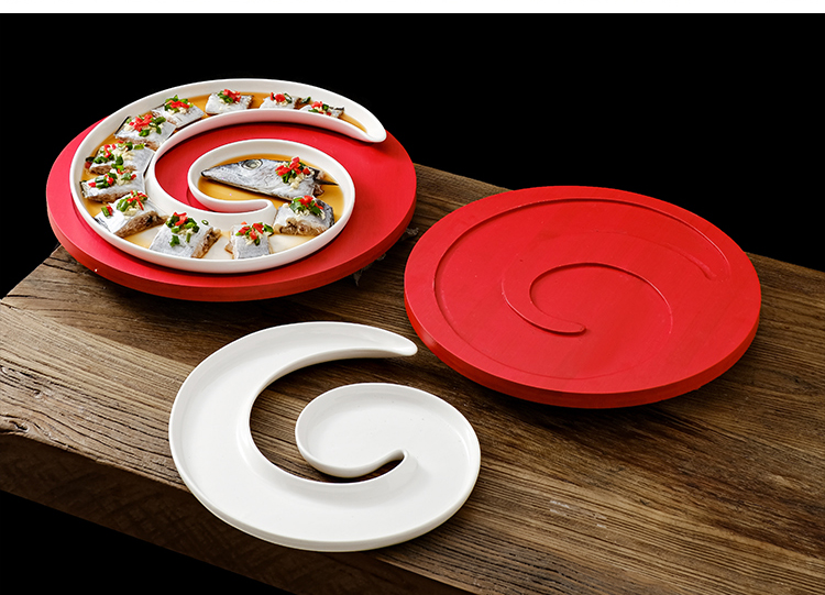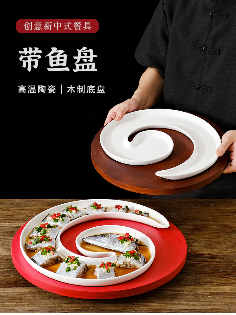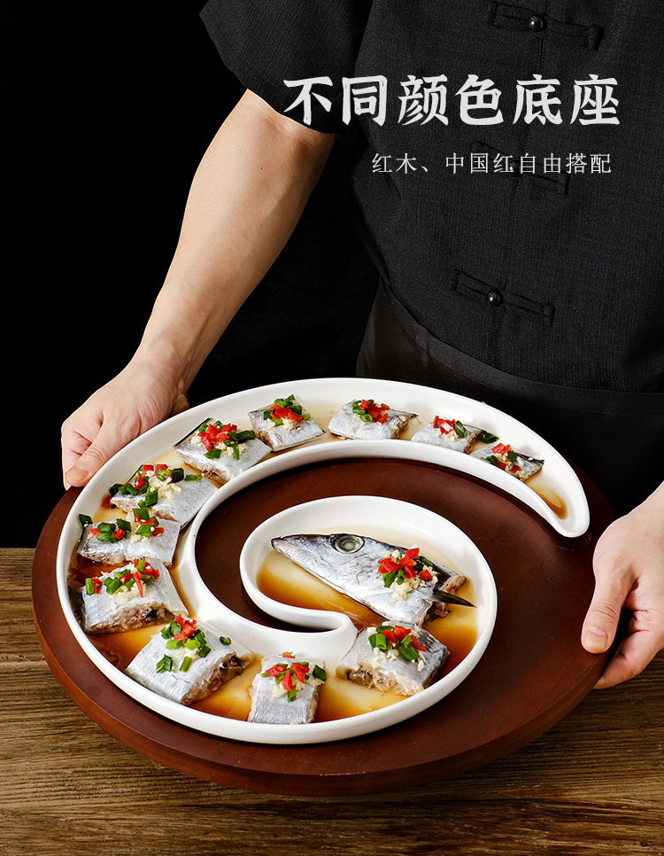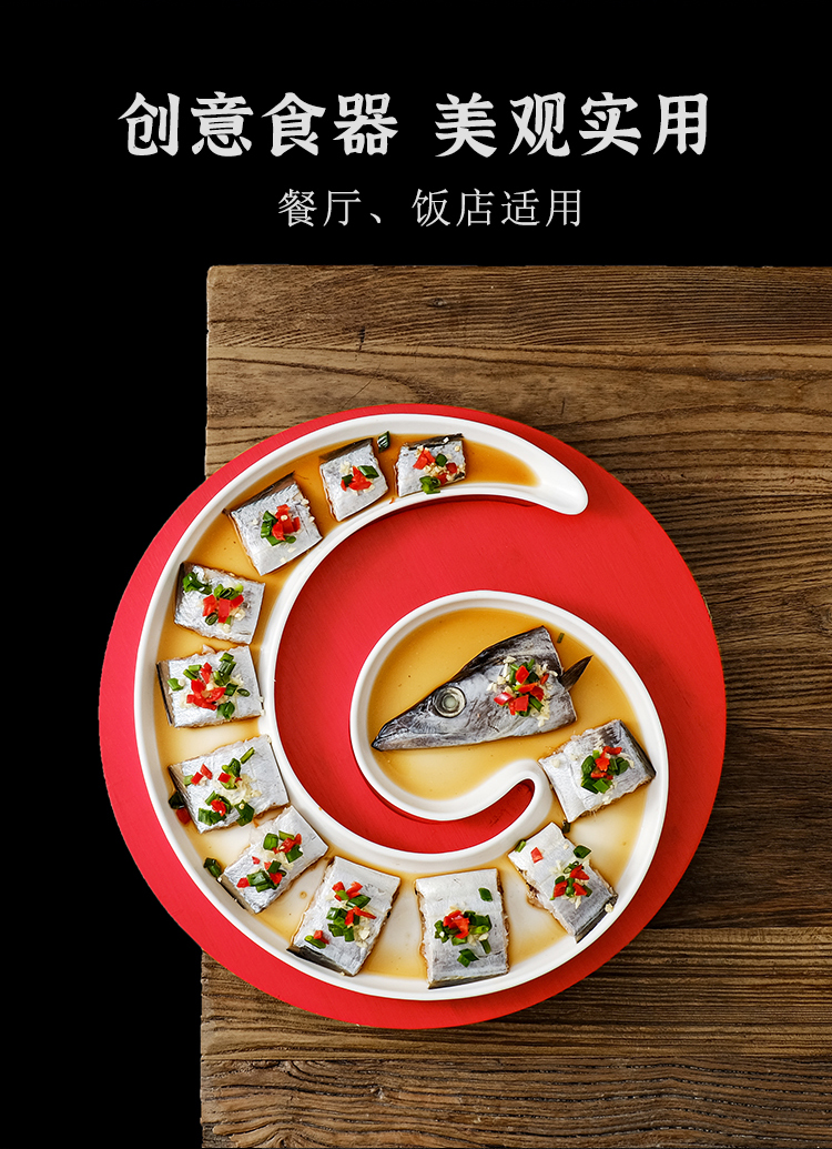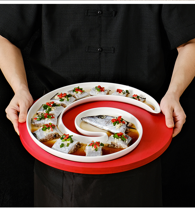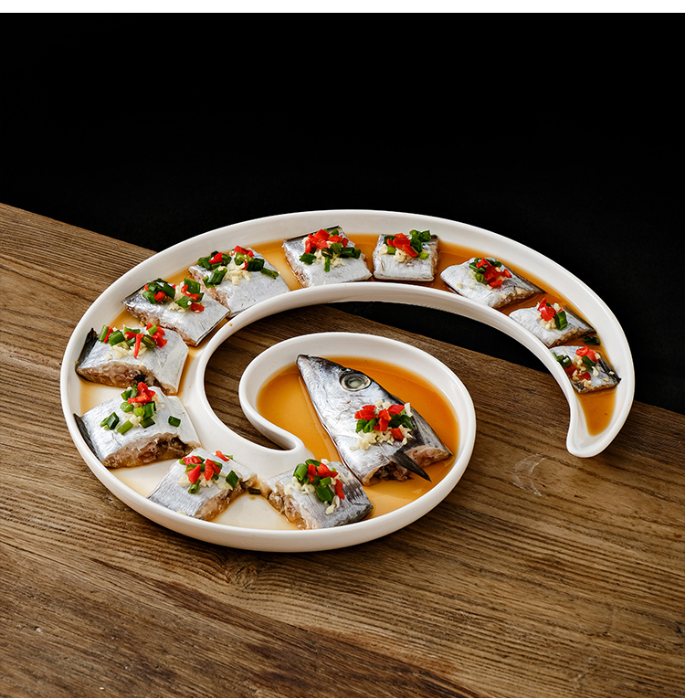 クリエイティブなインターネット有名人の長い曲線状のサバとウナギのセラミックプレートホテルレストランの特徴的な料理レストランクラブプレート