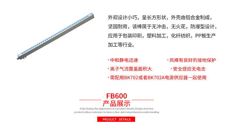FB600 水平静電気除去イオン風棒除塵イオン風棒帯電防止装置静電気棒