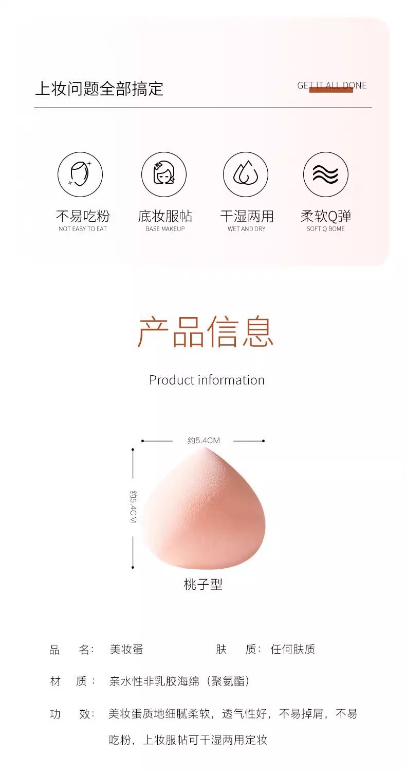 越境大型桃型メイクアップエッグ/パフ、粉を吸わない、水に濡れると大きくなる水滴型メイクツール、卸売対応