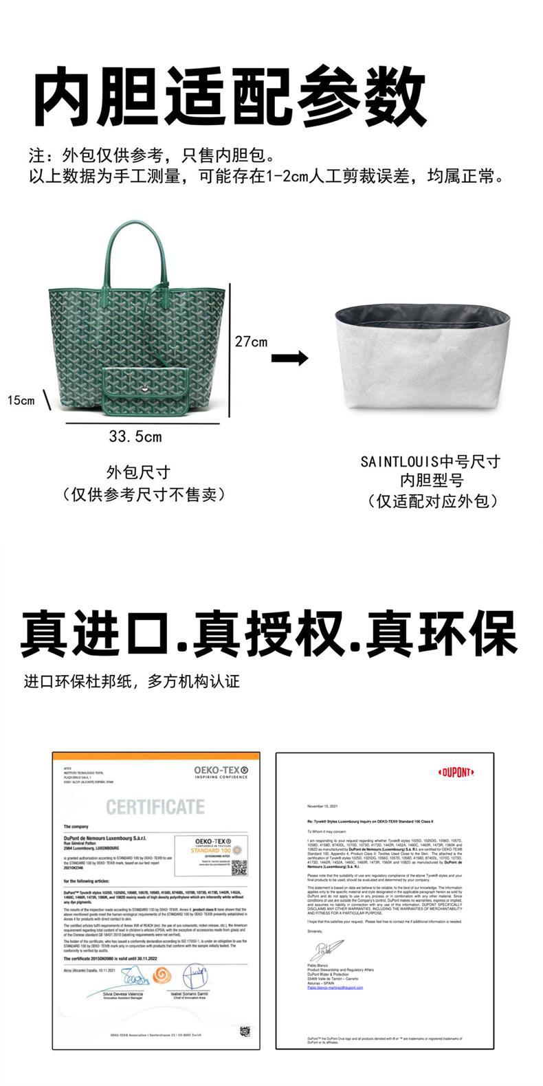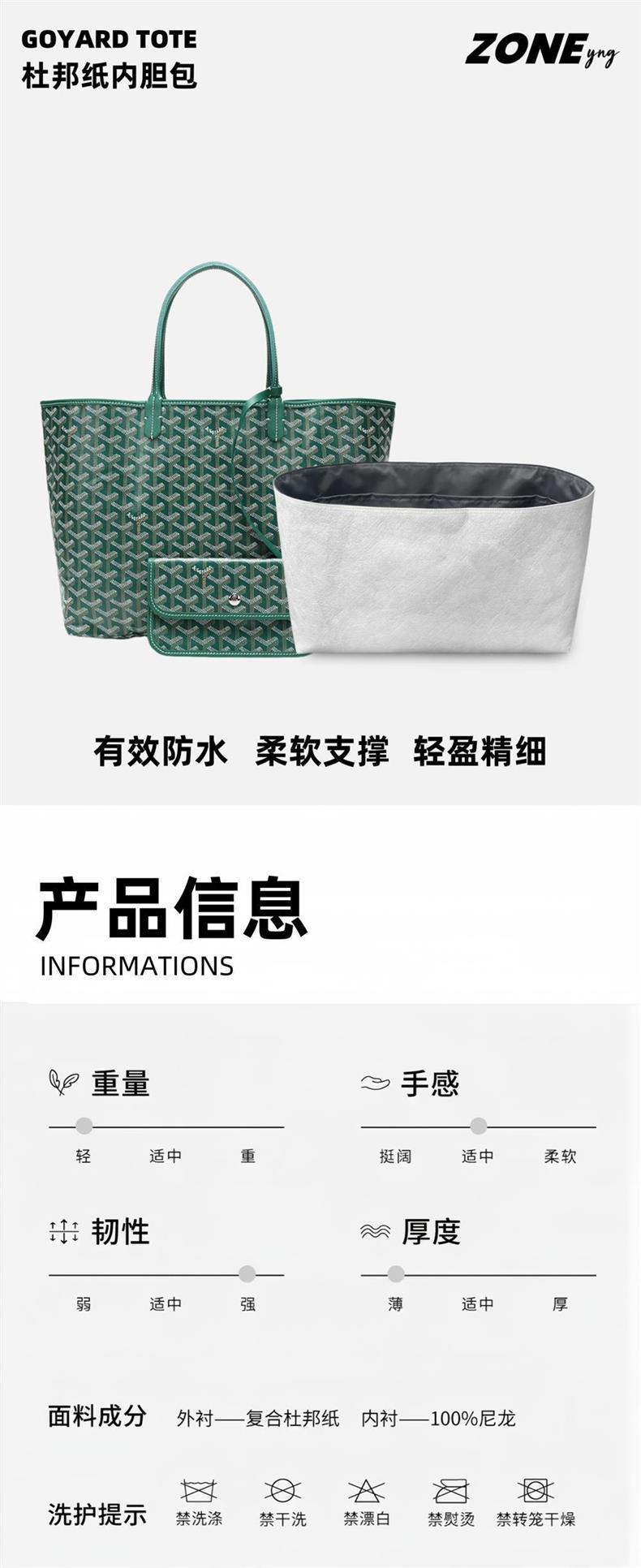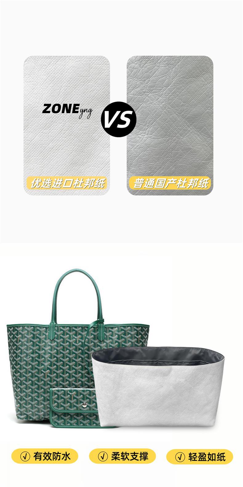 ゴヤールトートバッグ、ドッグトゥースショッピングバッグ、デュポン紙ライナーバッグ、軽量防水ライナーバッグに適しています。