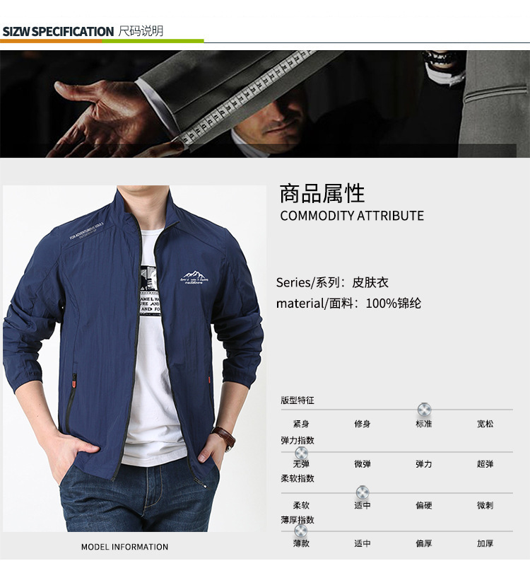 春と秋のカジュアル防風日焼け止め服男性屋外の薄い通気性のある突撃コート防水カジュアルな突撃服