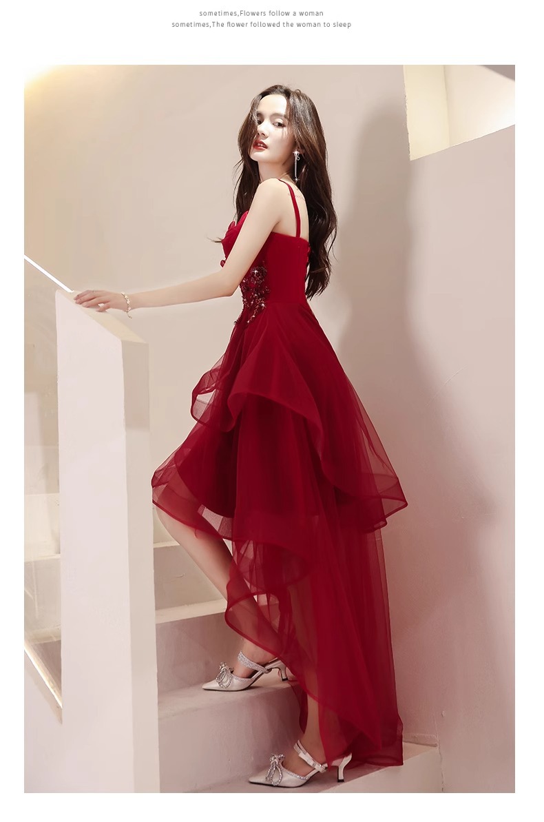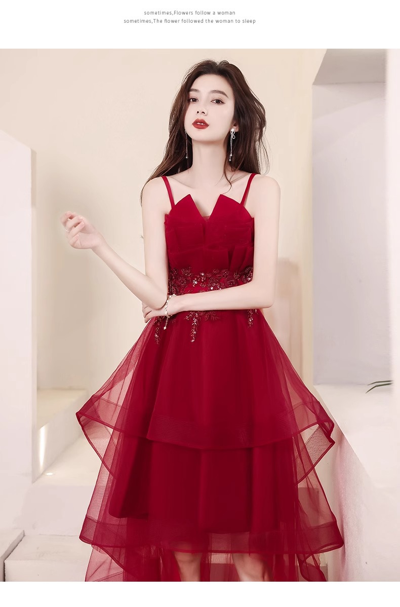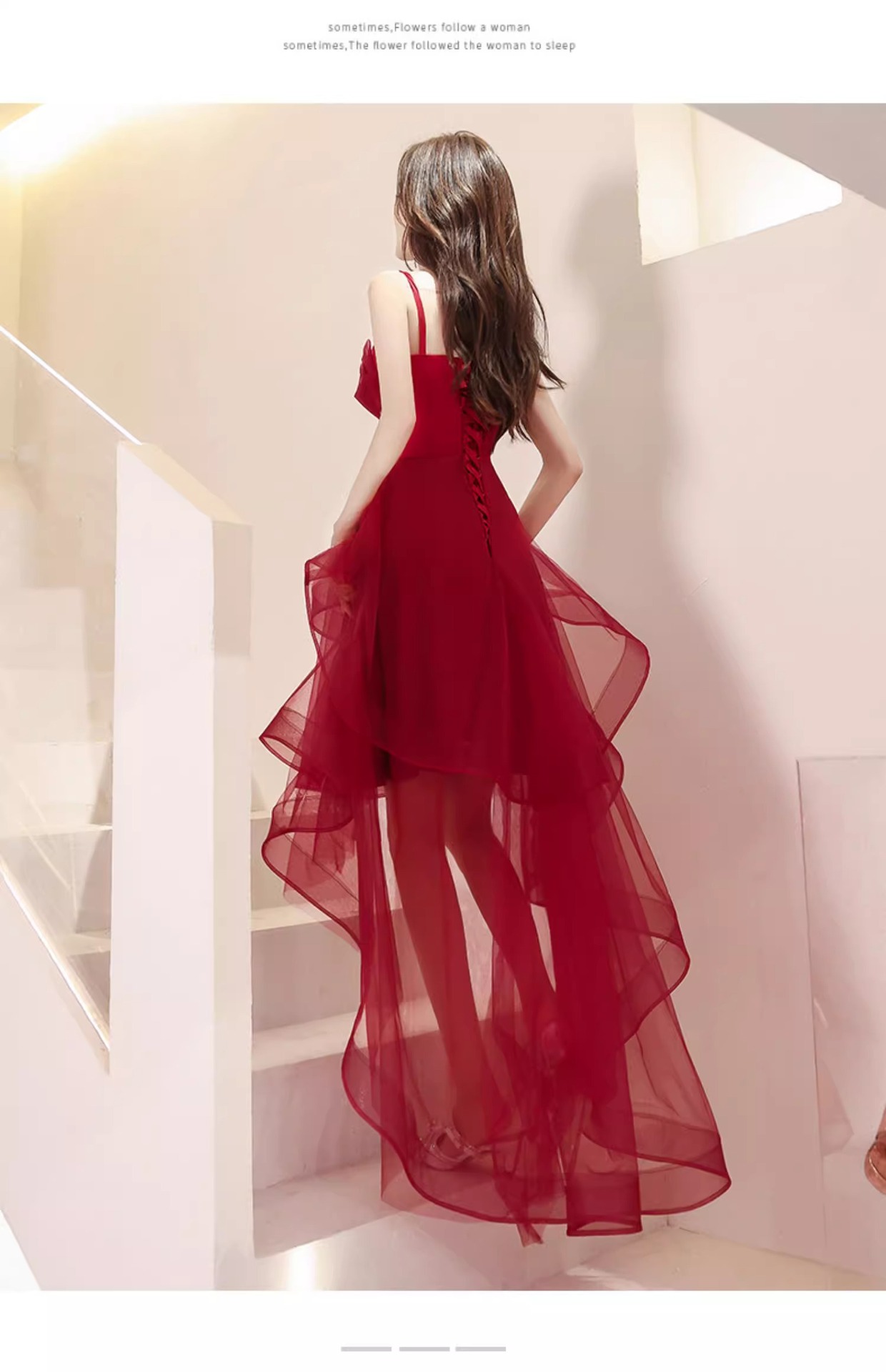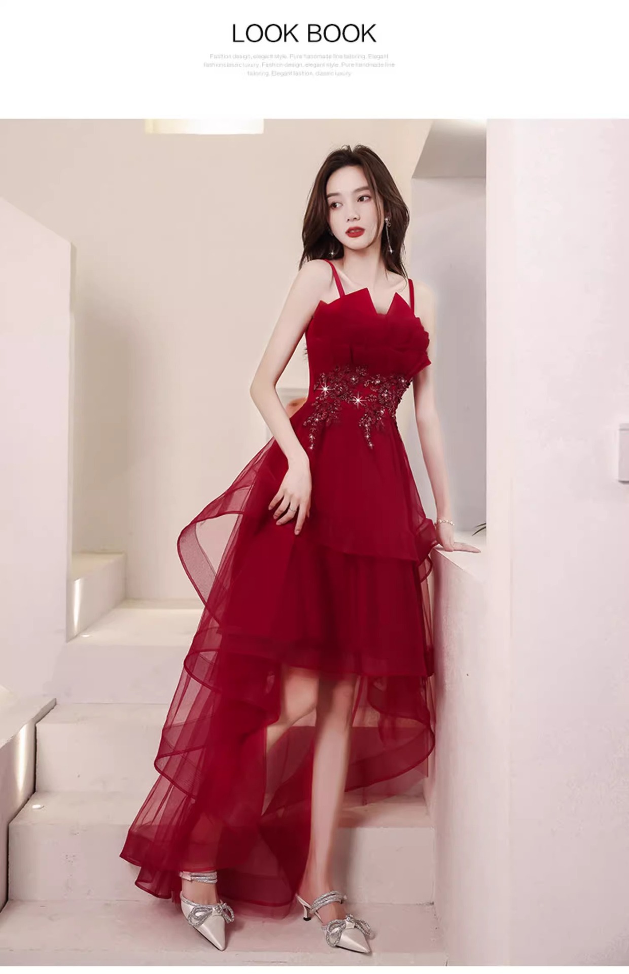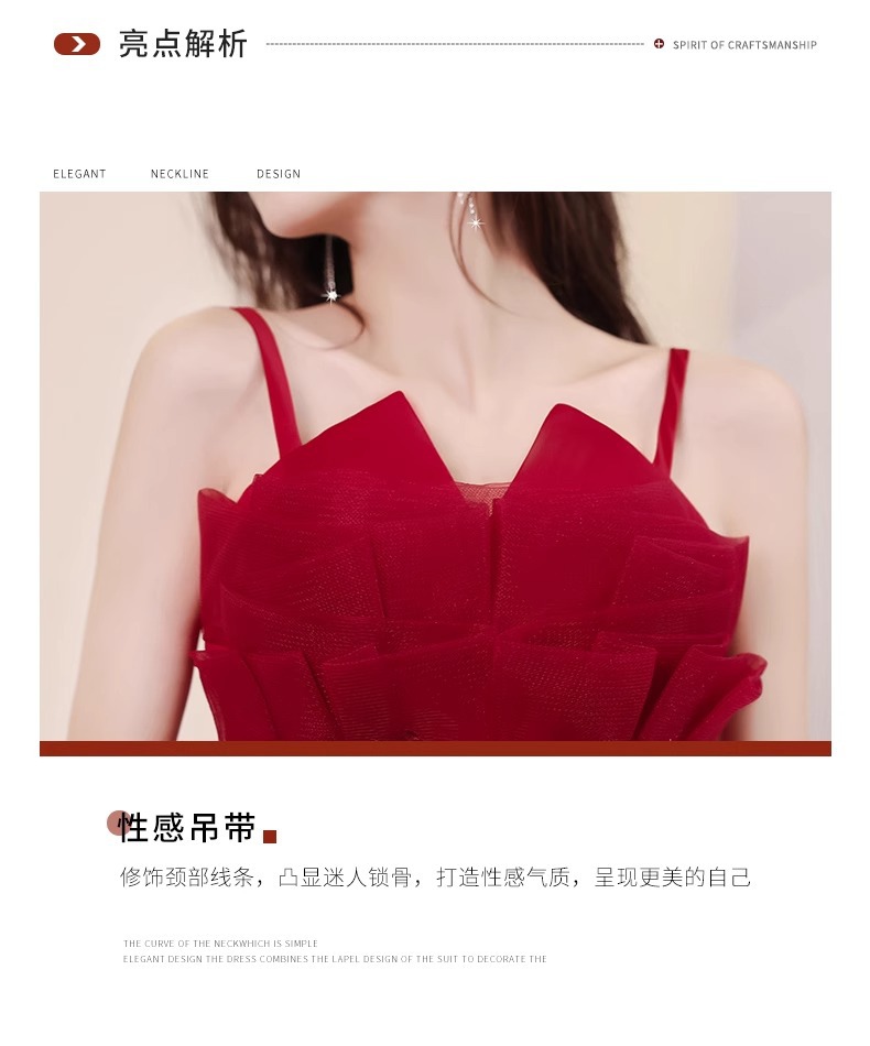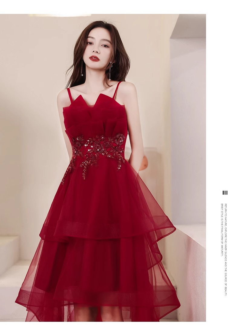 敬酒服の新婦2025の新型の赤いウェディングドレスの赫本風の赤いスカートの婚約のワンピースの結婚の小さい夜のドレスの女性