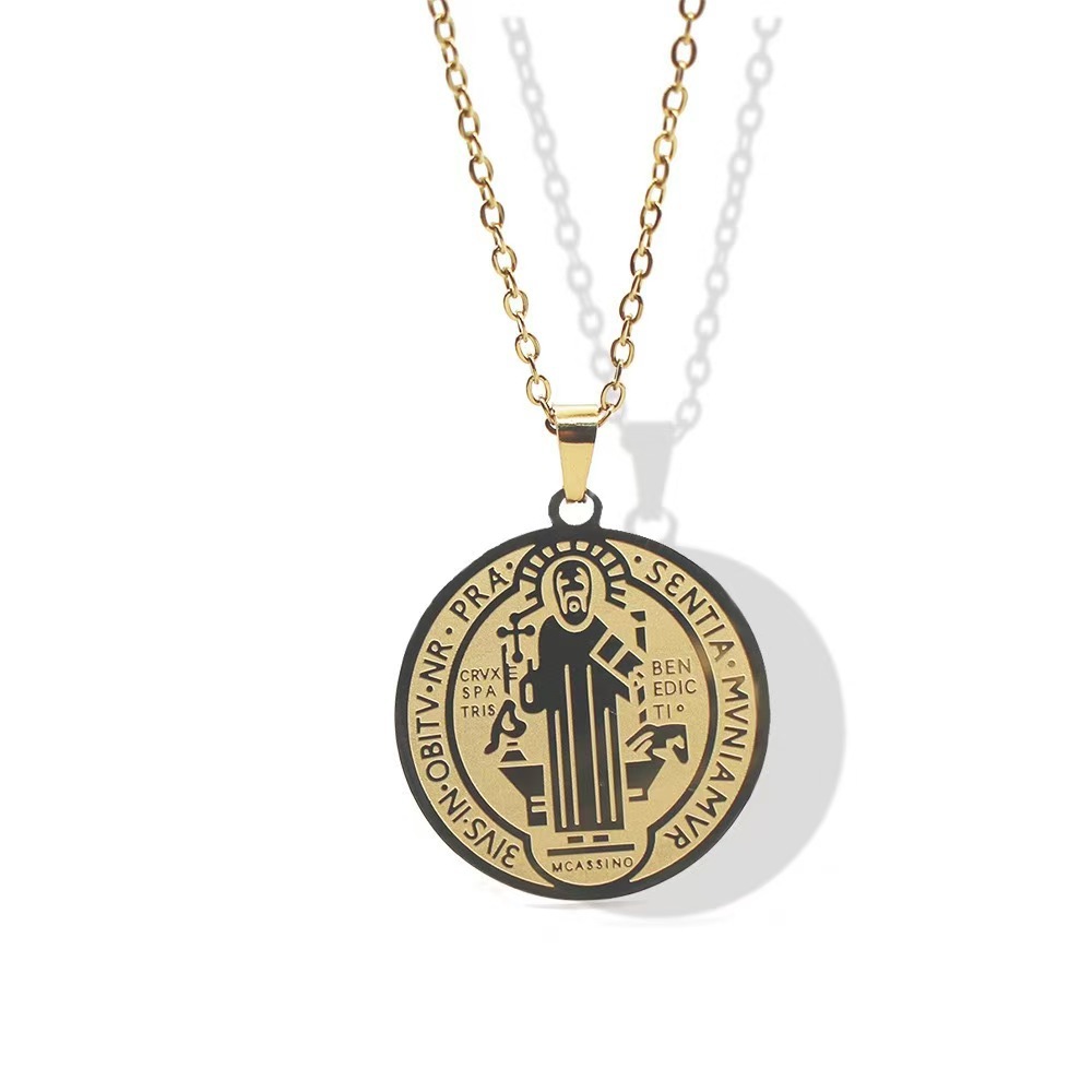 クロスボーダーステンレス神父聖ベネディクトネックレス魔除け人ステンレスペンダント男性レトロ円牌飾品