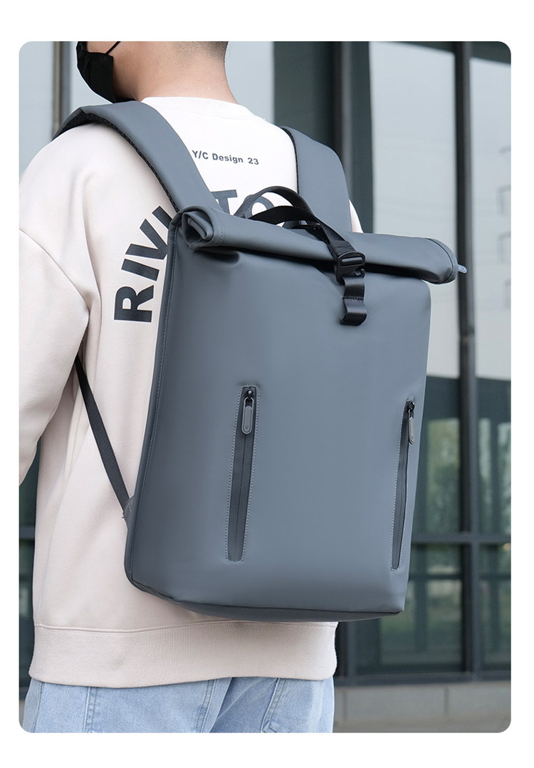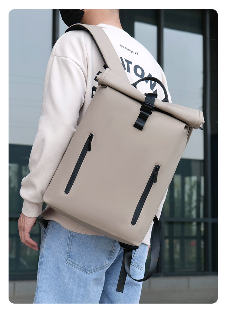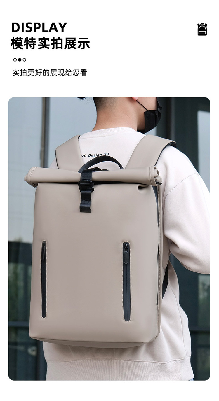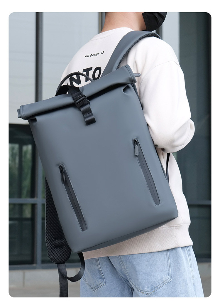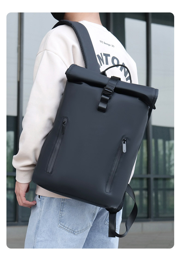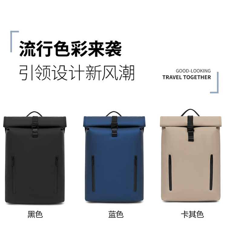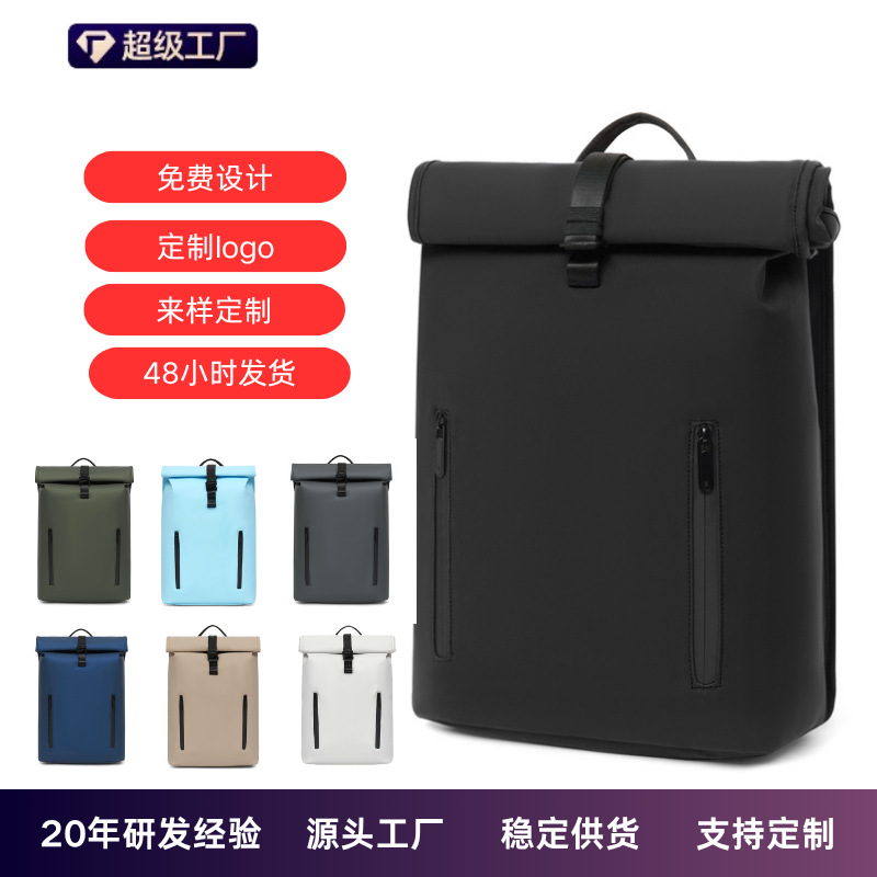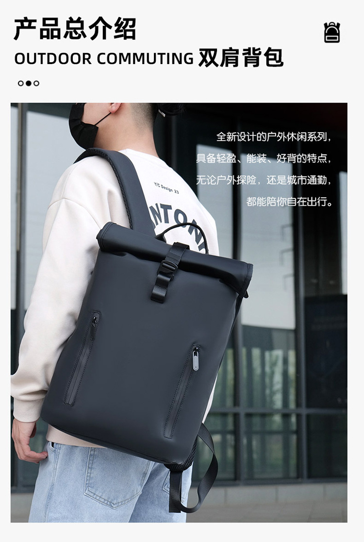 跨境卷口休闲背包15寸电脑包顶卷盖双肩包通勤休闲大学生通勤书包