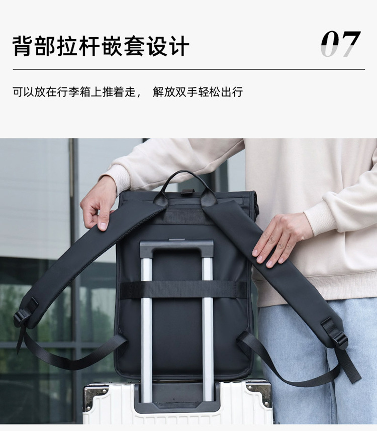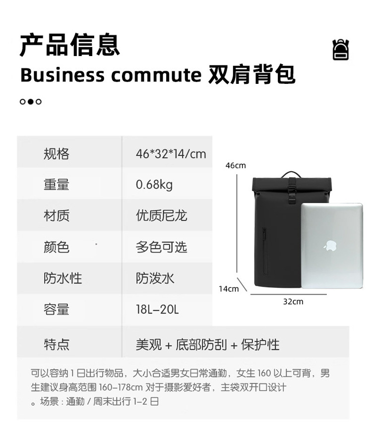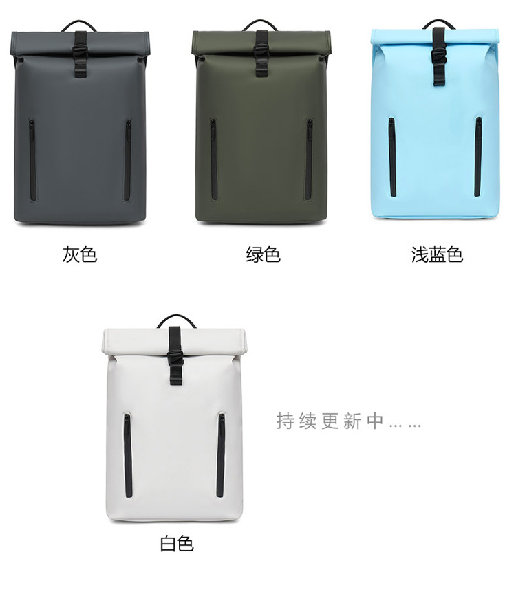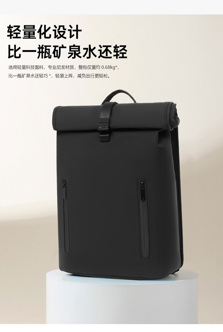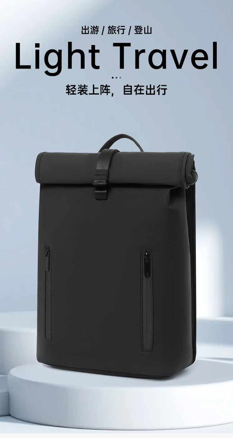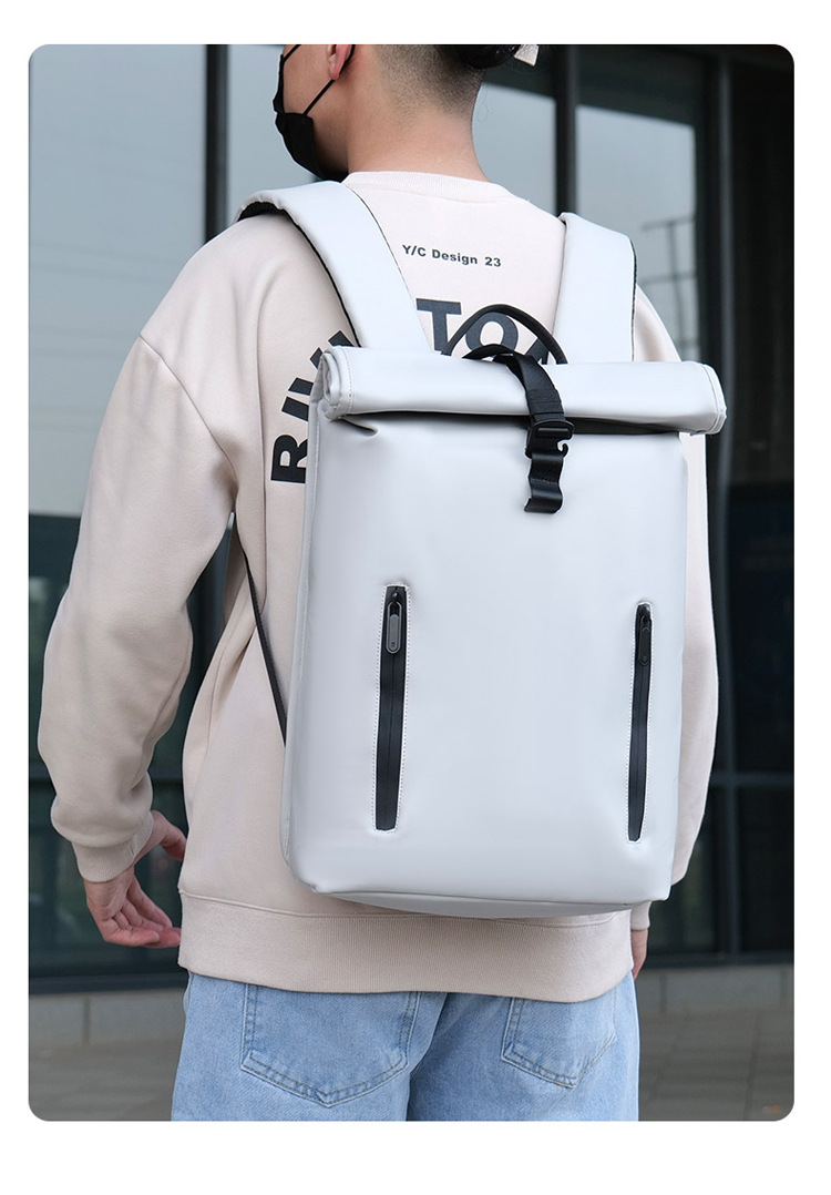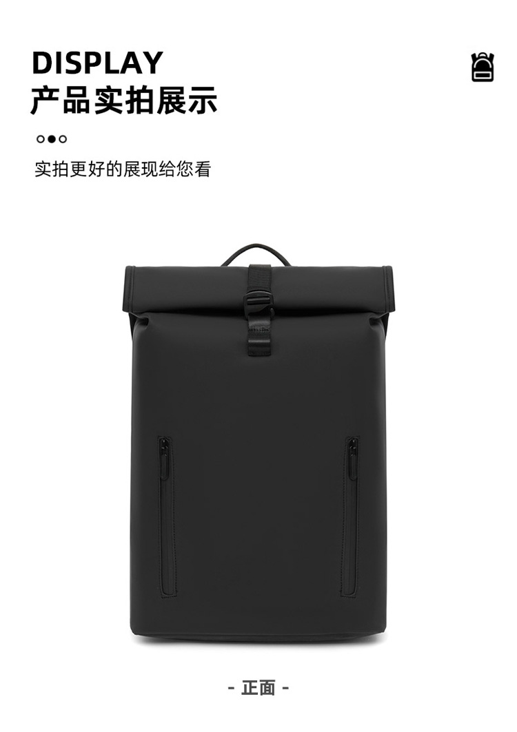 跨境卷口休闲背包15寸电脑包顶卷盖双肩包通勤休闲大学生通勤书包
