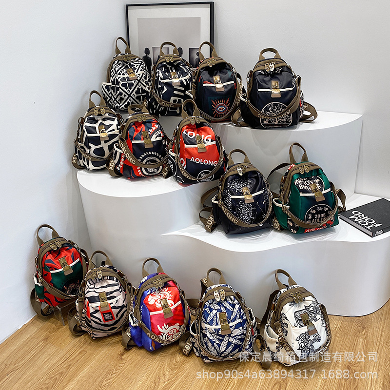 クロスボーダー小吉象旅行バックパック女性の 2025 新しいファッションプリントナイロン布女性のバックパックカジュアル防水