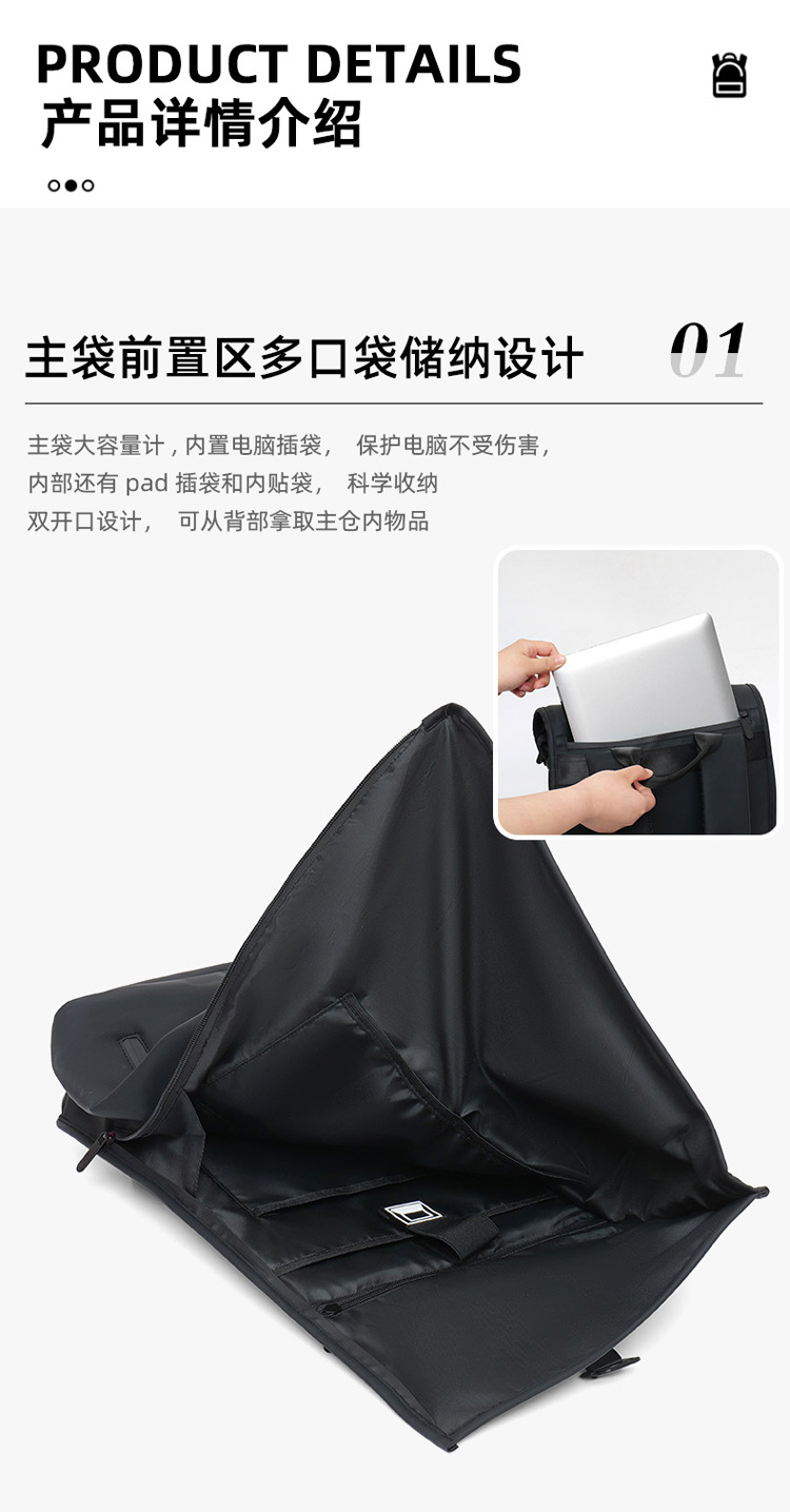 跨境新品卷边扩容商务电脑双肩背包大容量防水皮膜休闲旅行双肩背