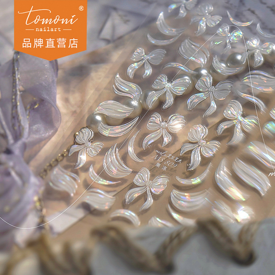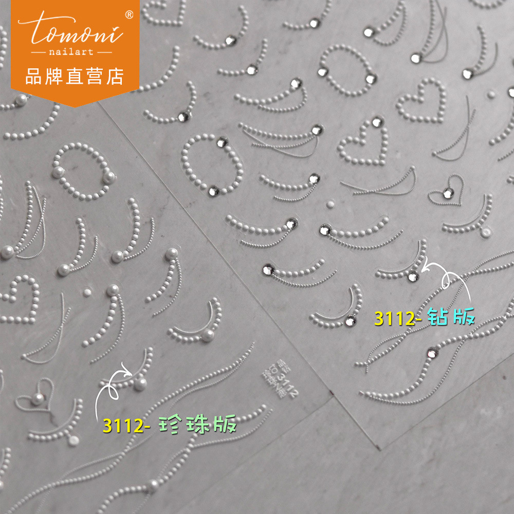 tomoni & ロストクリスタルダイヤモンドネイルアートステッカーダイヤモンドピュアホワイトエレガントライトラグジュアリーネイルステッカーフレンチパールライン