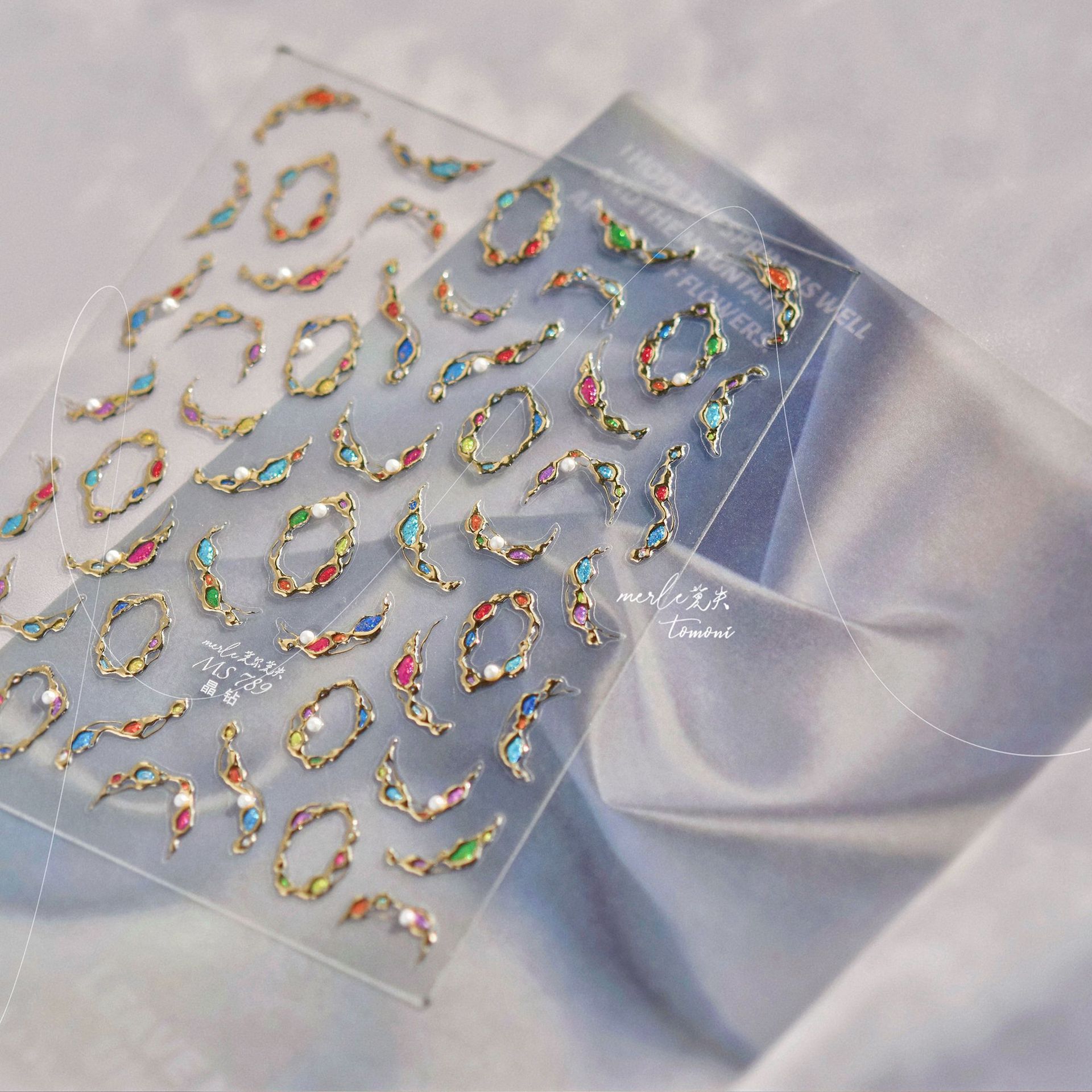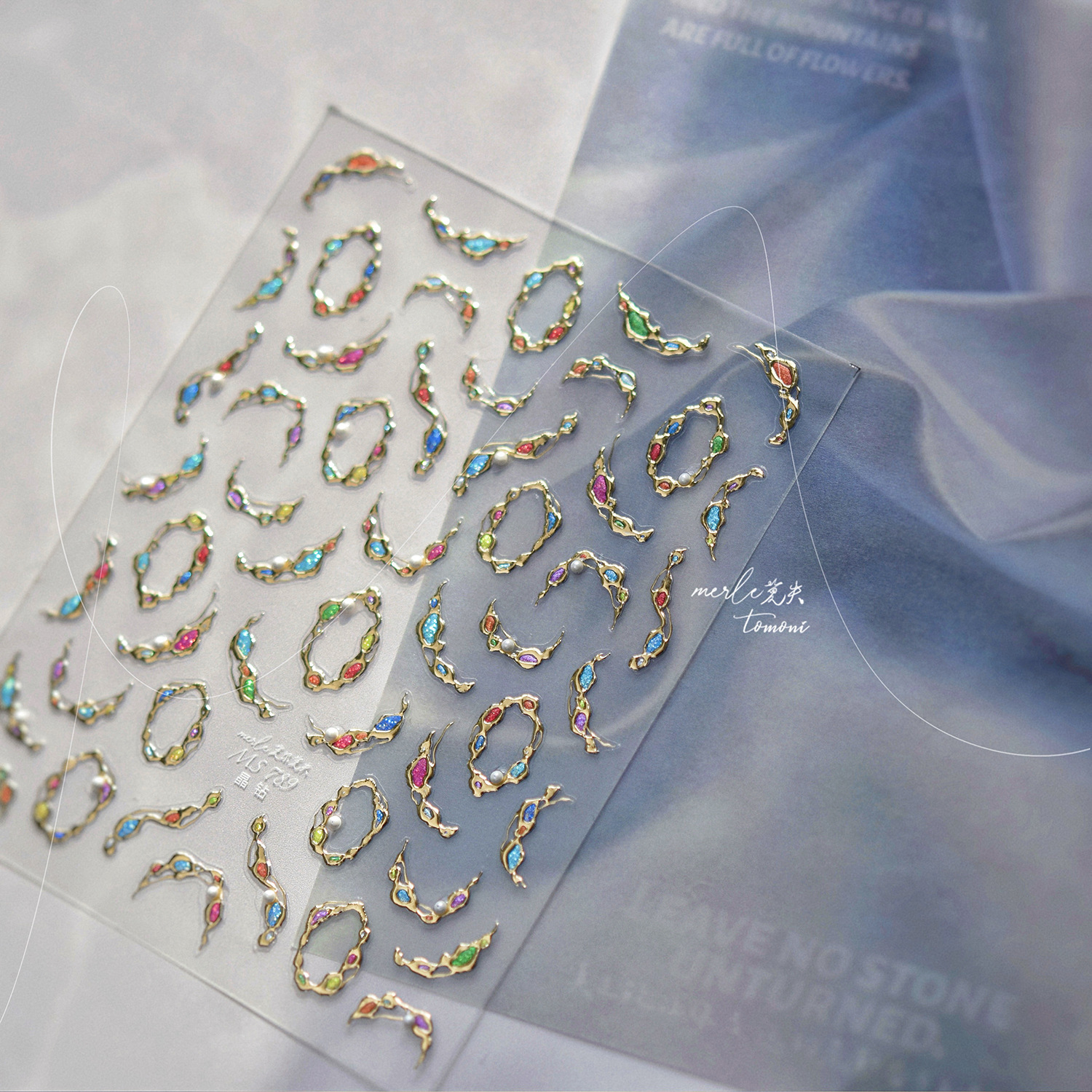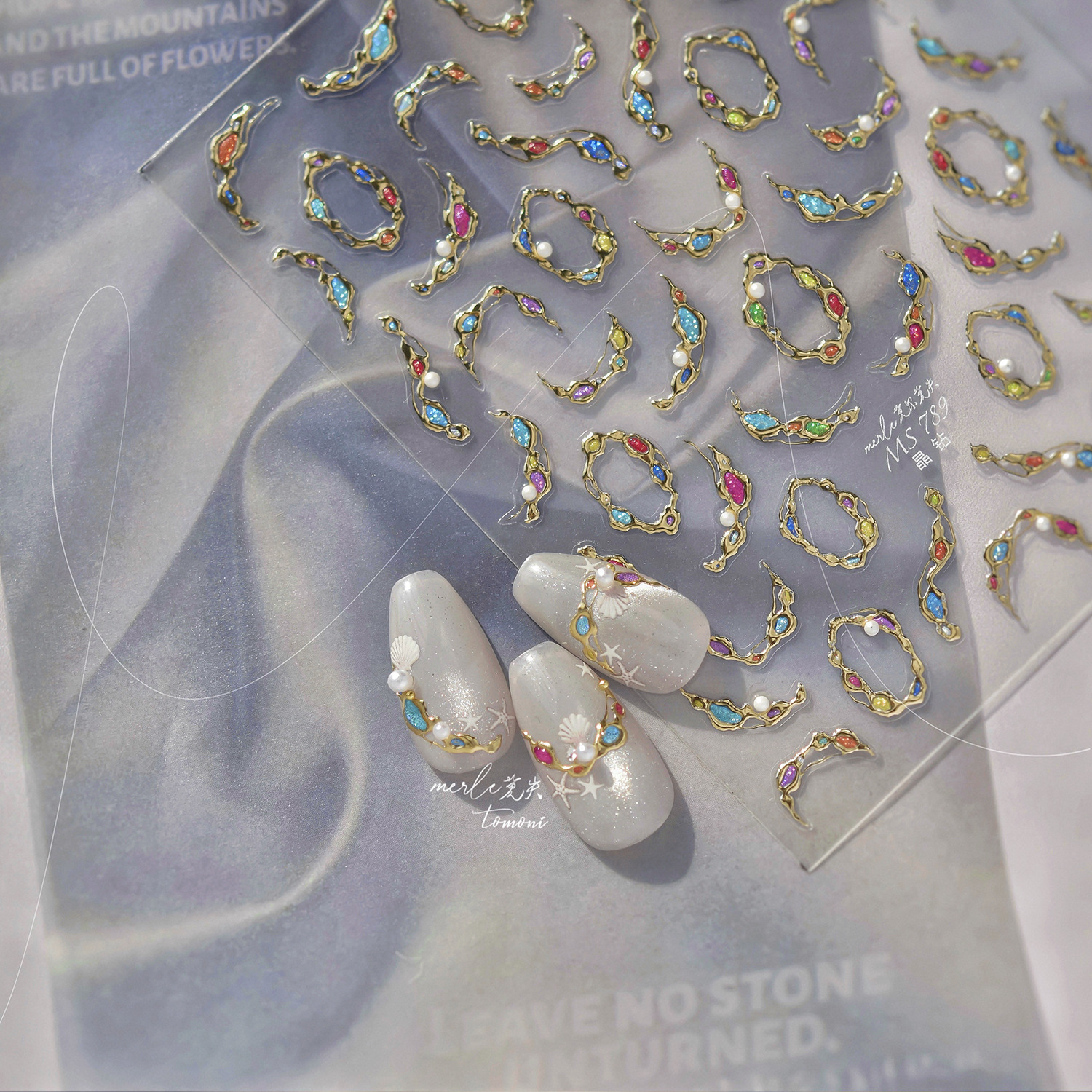 tomoni&莫失金属高贵优雅美甲贴纸轻熟风指甲贴金边权杖饰品素材