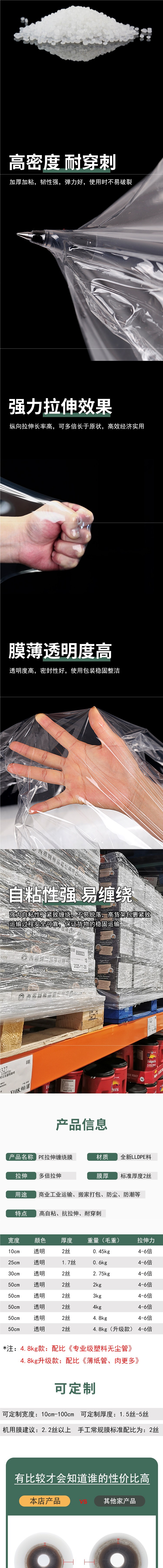 ストレッチフィルムストレッチフィルム大ロール工業用包装パレット物流移動保護ツール防塵PEフィルム卸売