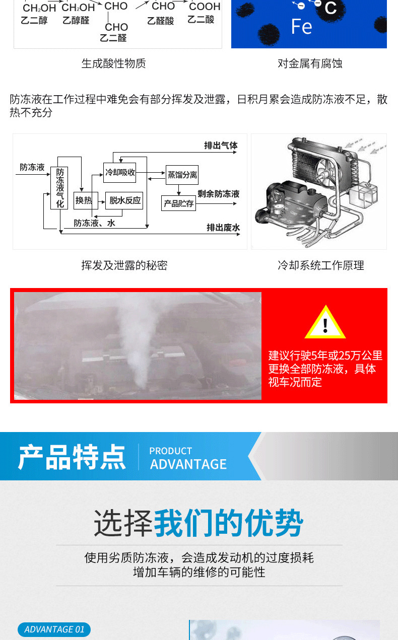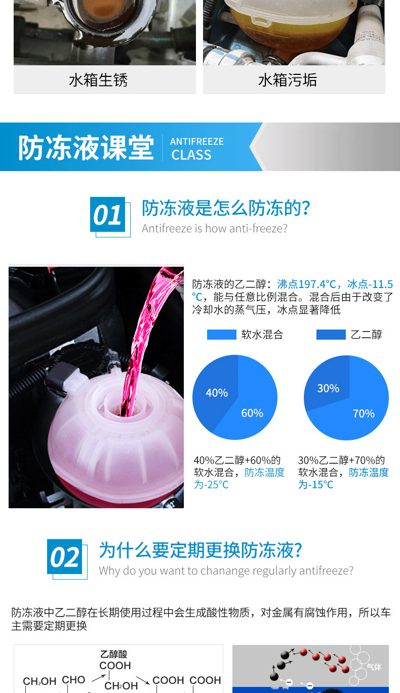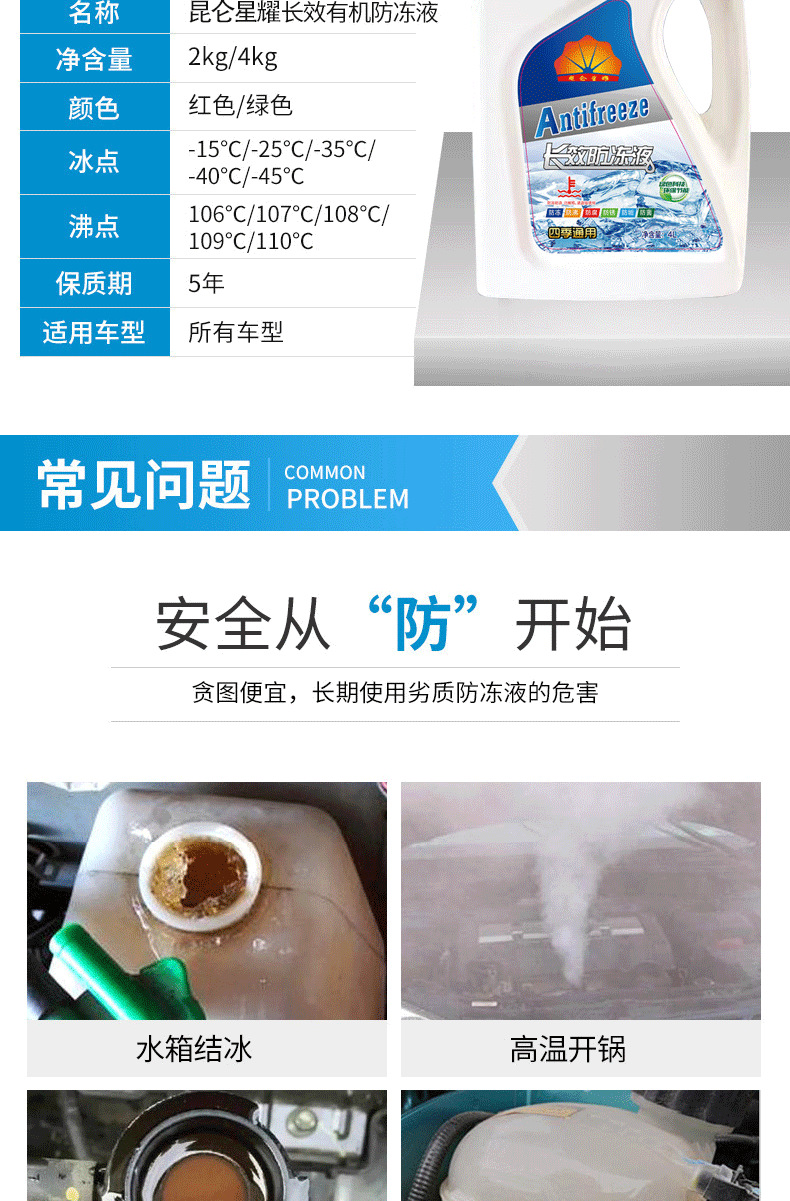 古典的な不凍液自動車エンジン冷却液赤緑タンク宝冷凍液四季車用品