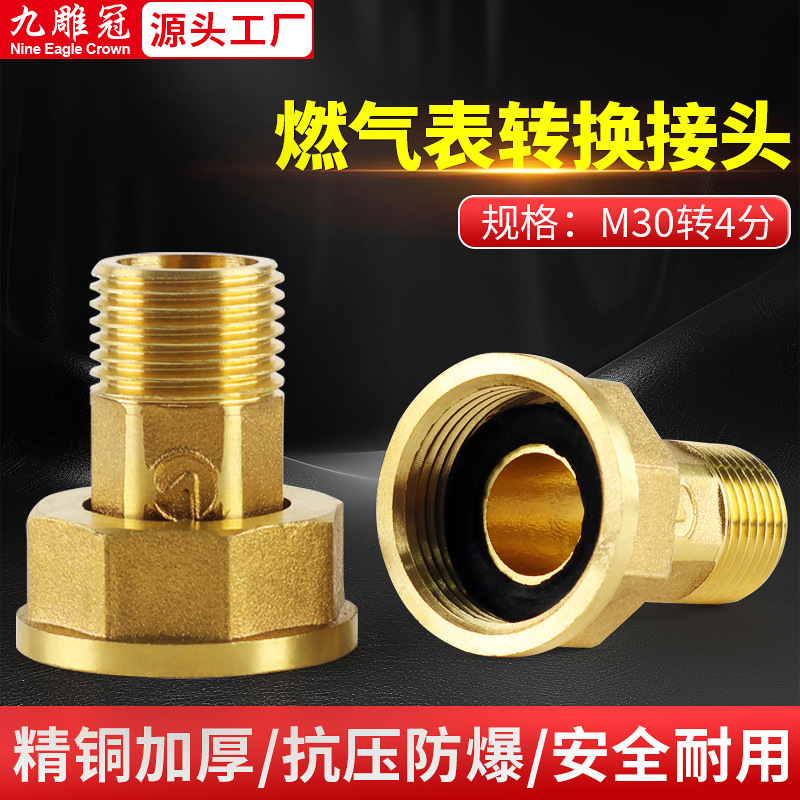 天然ガスメーター用変換継手全銅厚さM30回転4分外糸変径ガスメーターガス管継手