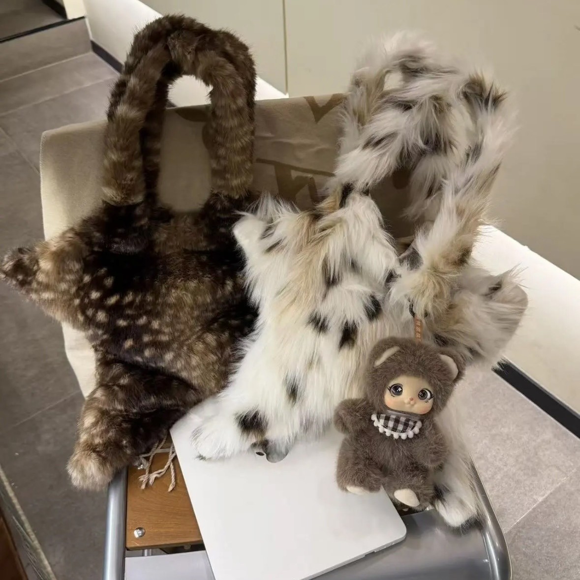 2025秋冬新款毛绒绒大容量手提五角包可爱小鹿豹纹时尚潮流单肩包