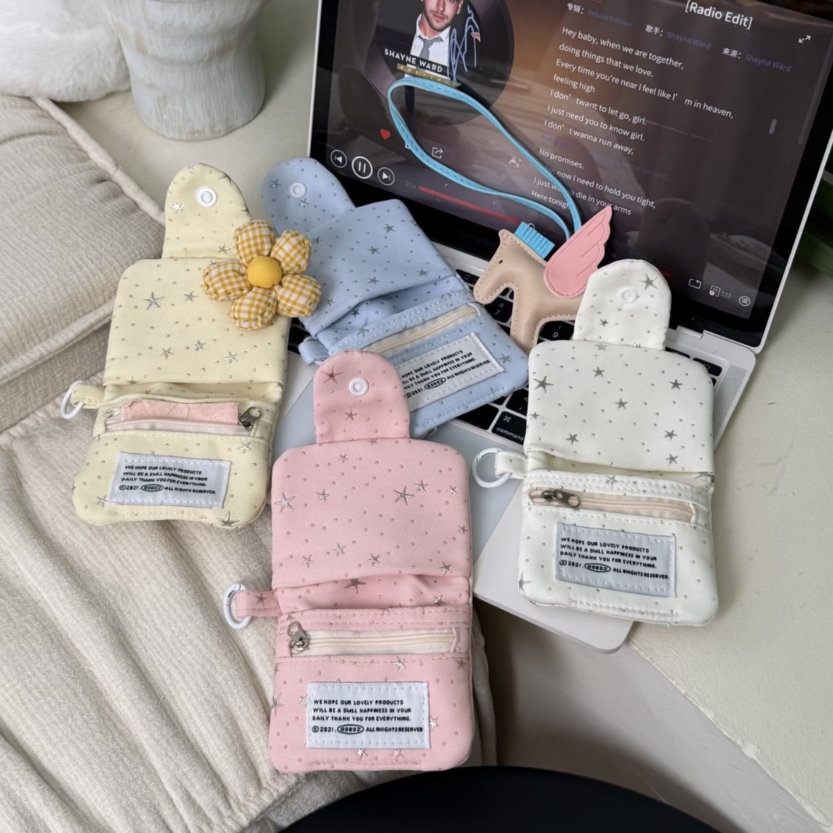 新款原创韩版小清新闪钻亮片星星小方包少女心卡包ins便携零钱包