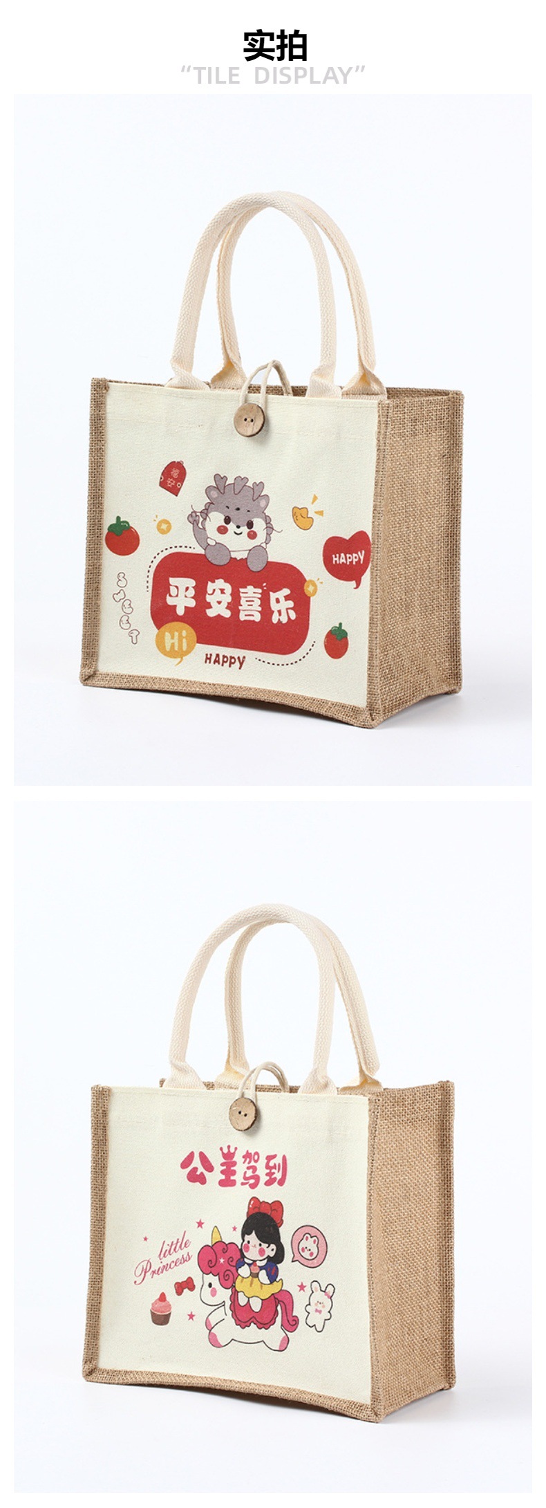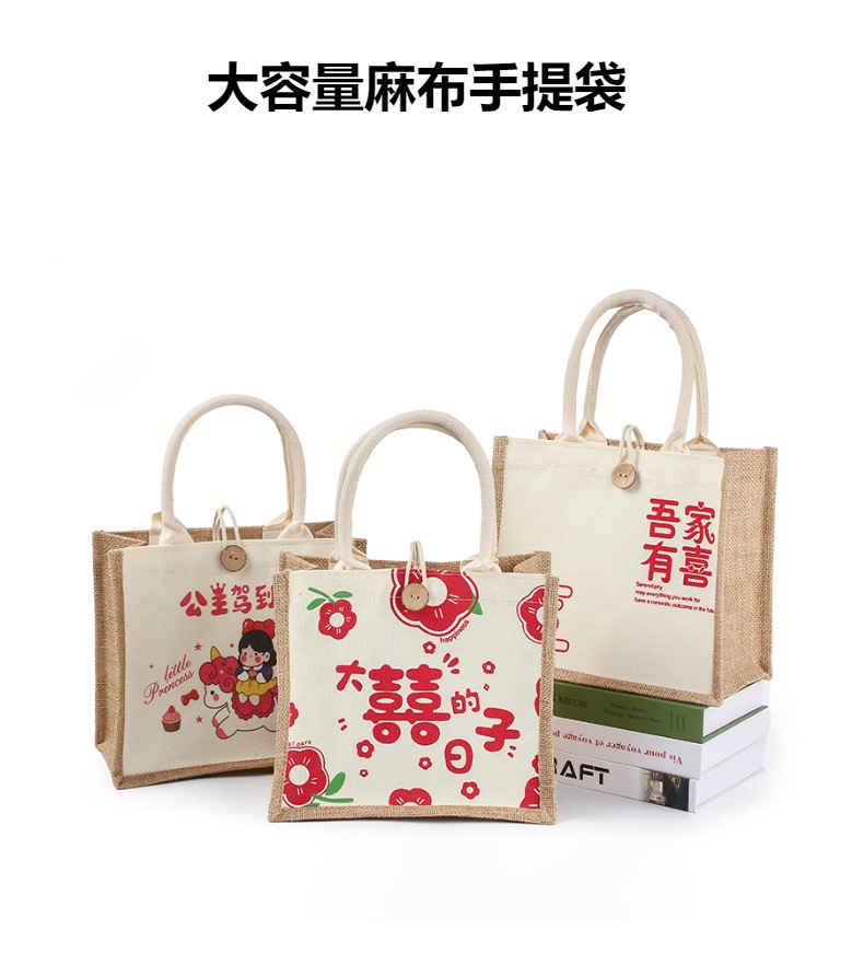 現物麻の袋のお土産袋キャンバスの結婚式の結婚のリネンの袋の麻布の手提げ袋の喜の字の高級感