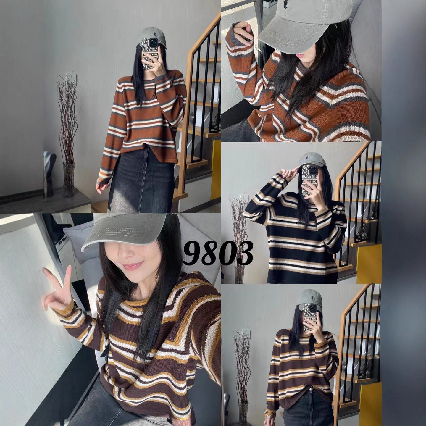dm9803圆领条纹撞色气质宽松长袖套头针织衫2025秋冬新品百搭上衣