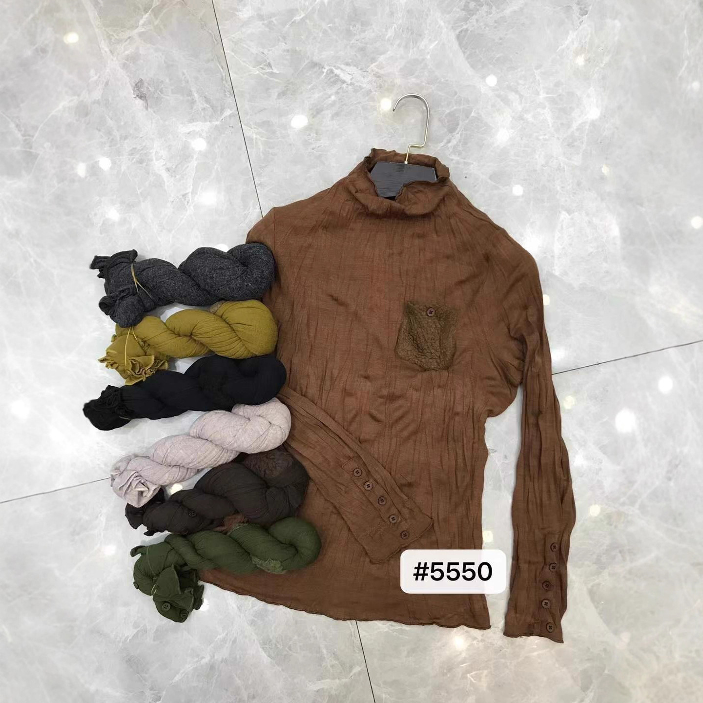 dm5550半高领褶皱设计款长袖套头打底衫2025新品时尚显瘦内搭上衣