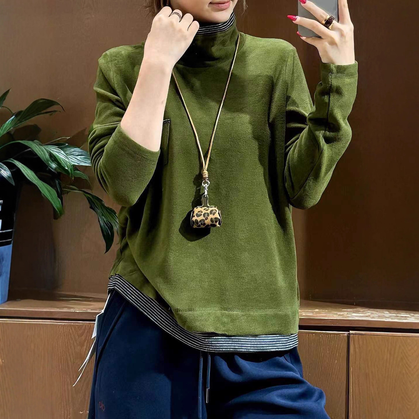 bjl11108韩版时尚气质拼接假两件高领卫衣女秋冬新品百搭套头上衣