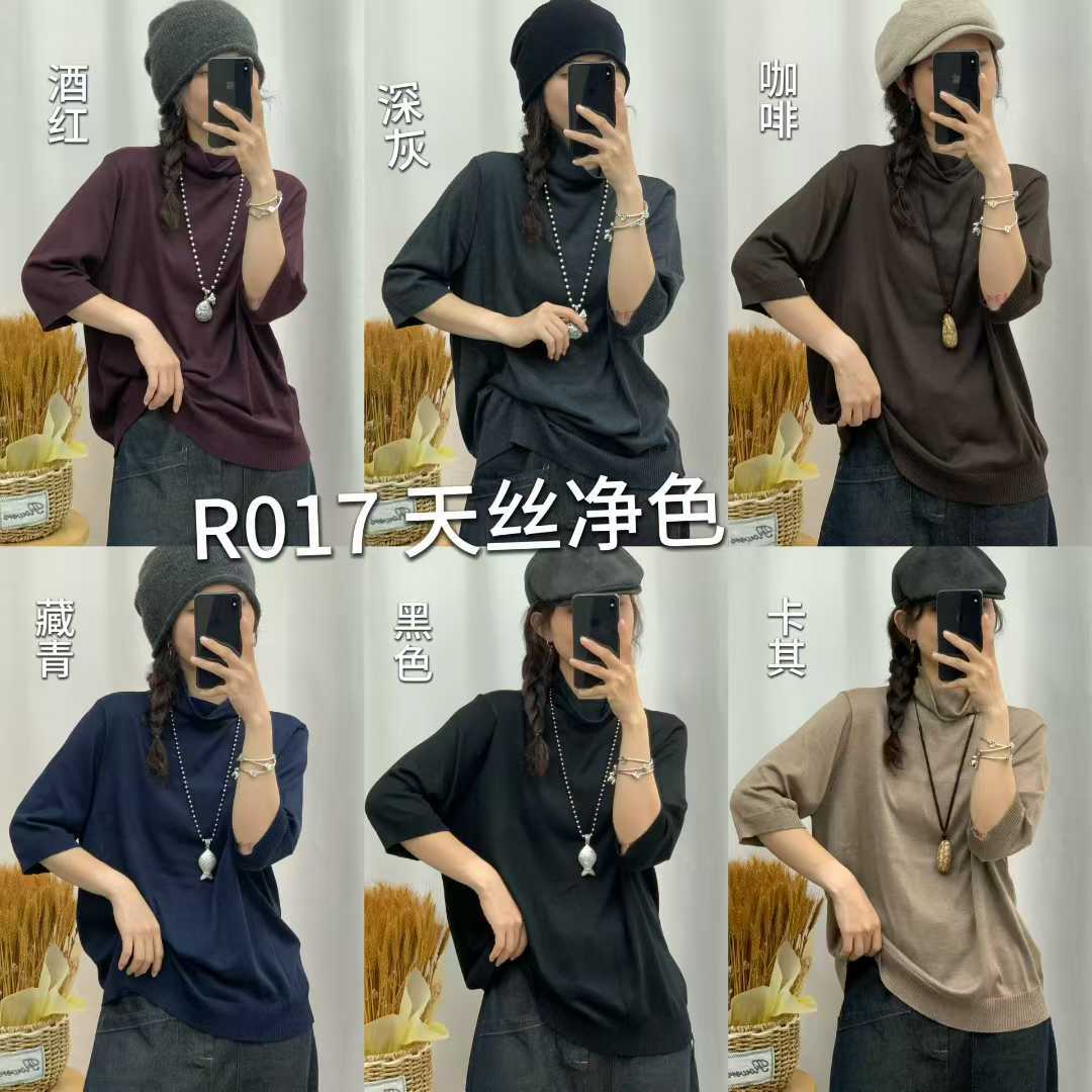 yyR017文艺净版中袖套头打底衫秋冬新品高领纯色内搭针织上衣女装