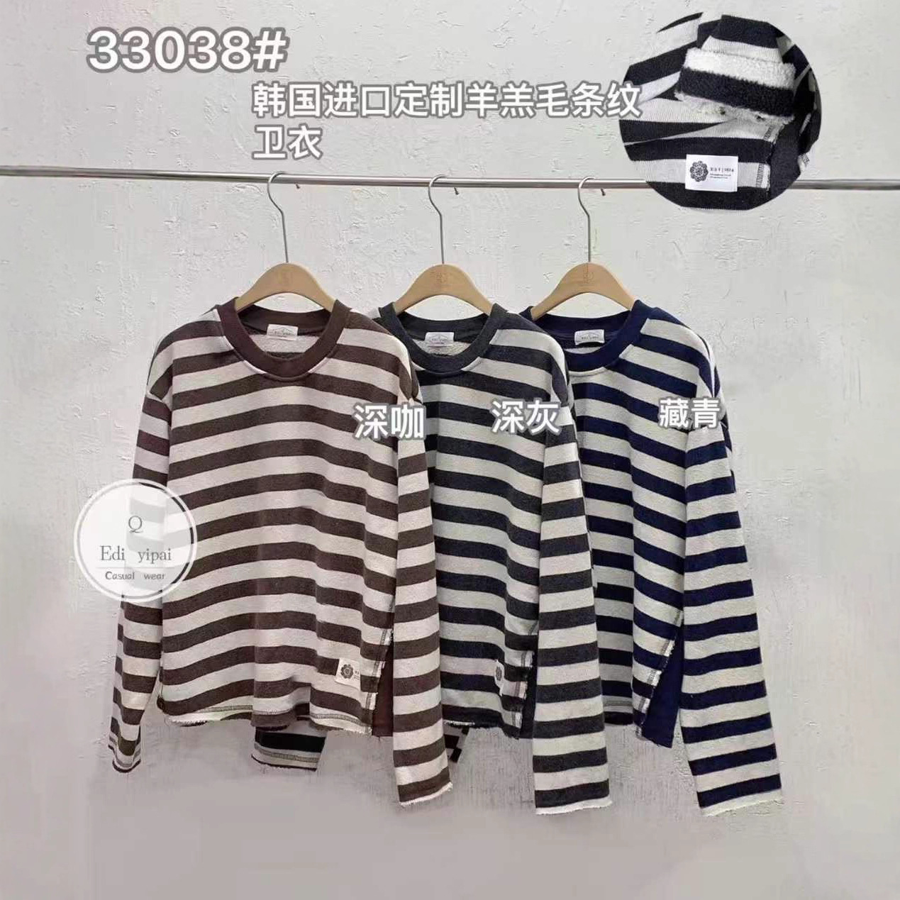 可定制LOGO韩版圆领羊羔毛条纹卫衣时尚气质百搭长袖上衣女批发价