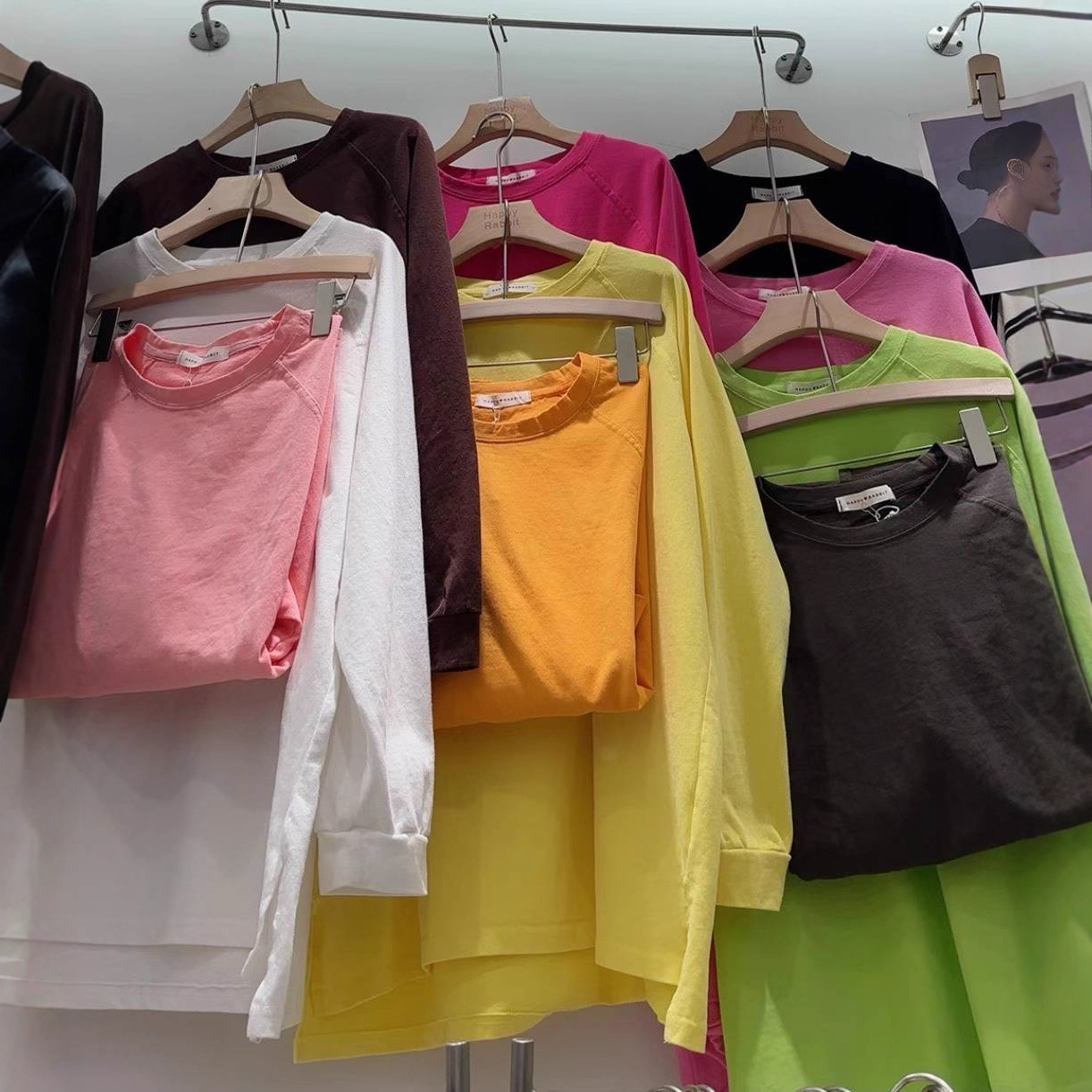 ht纯棉慵懒宽松休闲中长款内搭打底衫2025新品圆领纯色长袖T恤女