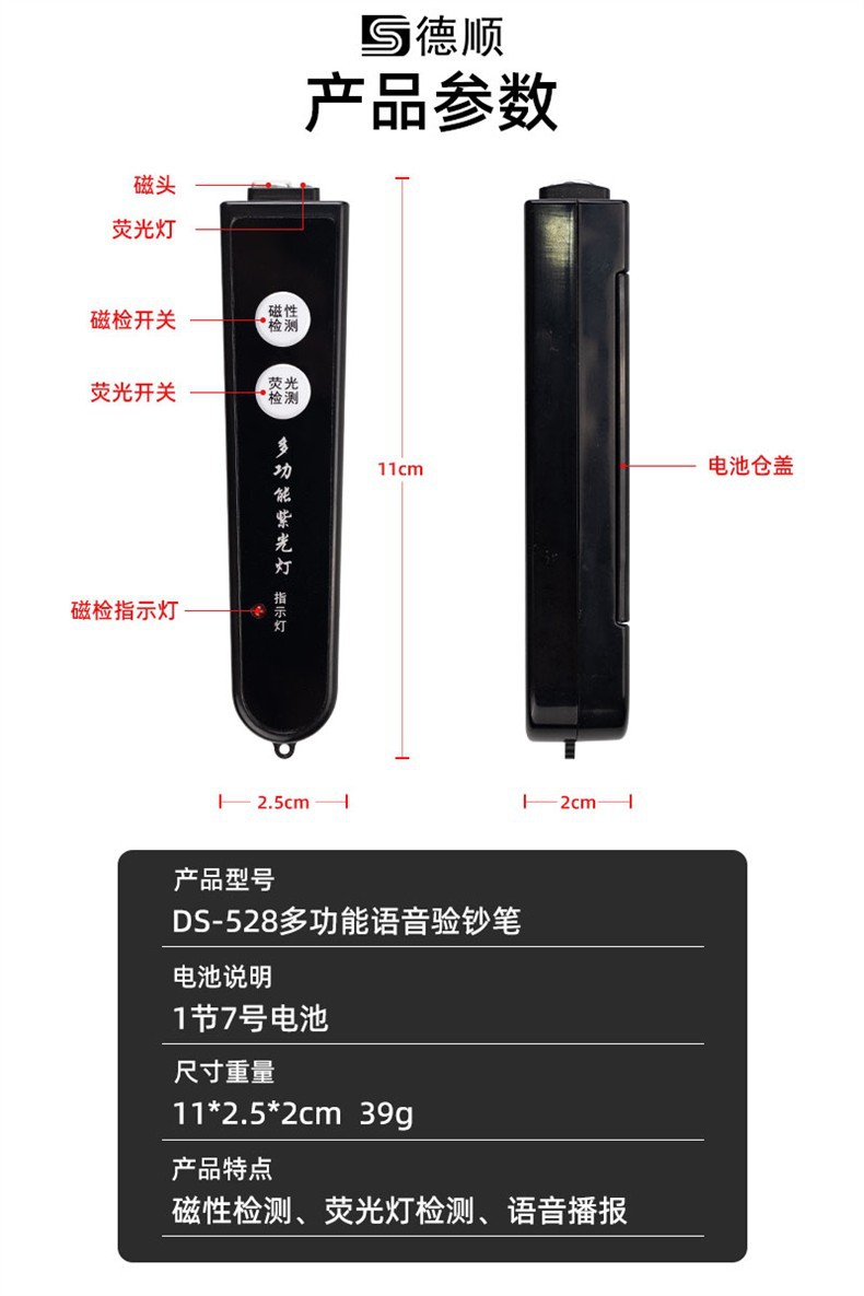 Deshun 528 磁気紙幣検出ペン小型 UV 紙幣検出ランプ紫色の光懐中電灯ポータブル蛍光剤検出ペン