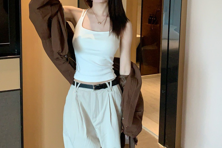 辣妹纯欲褶皱吊带背心女夏季细肩带内搭甜辣风无袖小上衣外穿显瘦