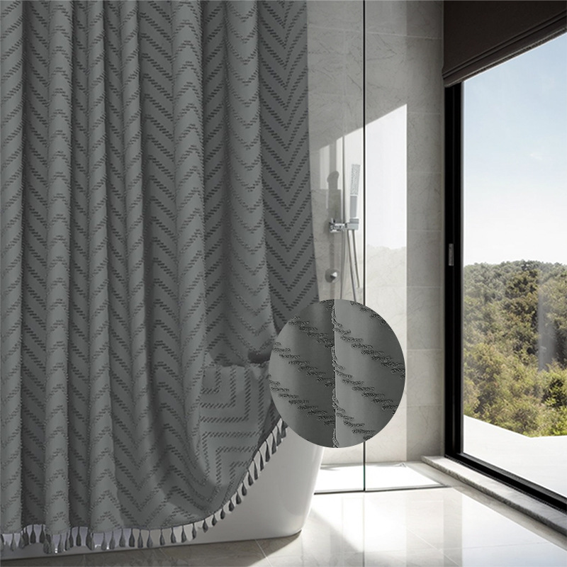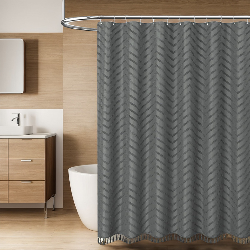 国境を越えた人気のシャワーカーテンボヘミアンウェーブカットフラワー防水シャワーカーテン厚みのある無地ホテルのバスルームシャワーカーテン