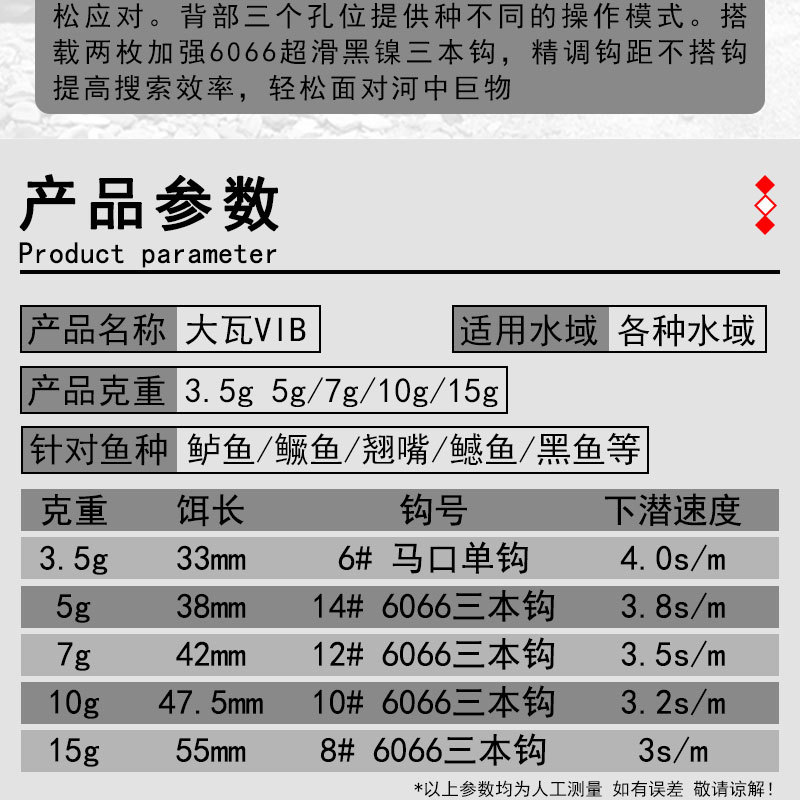垂星大瓦路亚饵可钓鲈鱼超金属vib薄背狂颤材质短体超远投金属饵