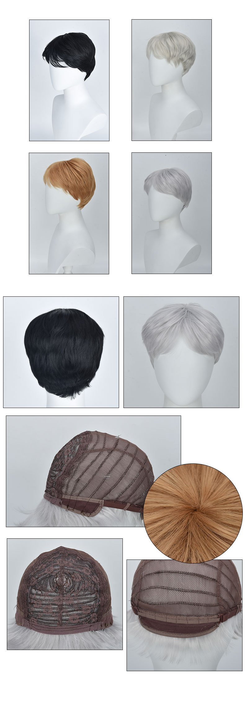 男性用ウィッグ、フルヘッドカバー、男の子用微細カットカバー、ショートヘア、前髪、韓国風ハンサムメンズデイリーふわふわヘアカバー