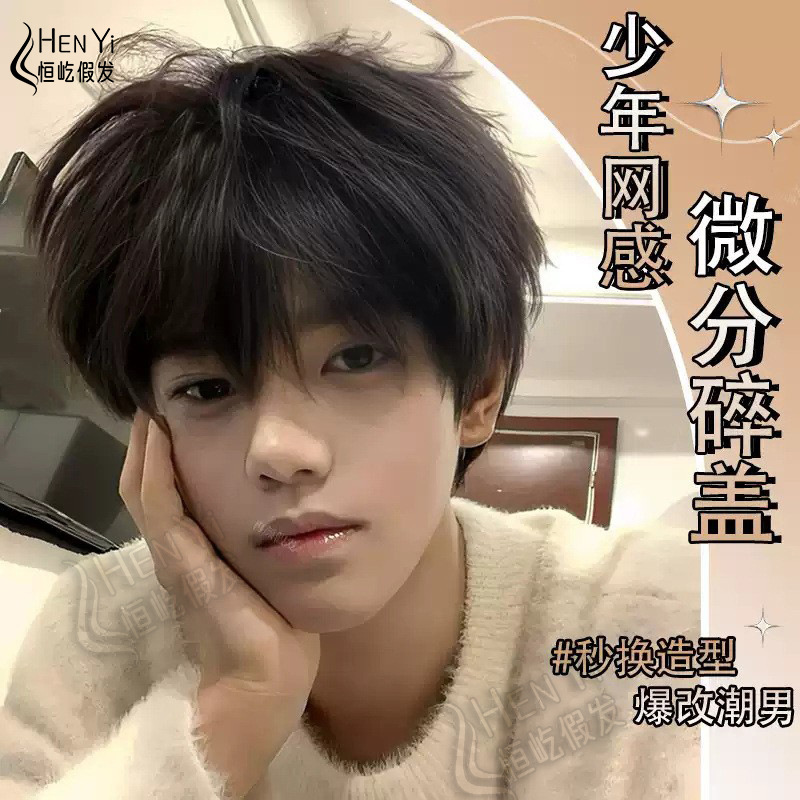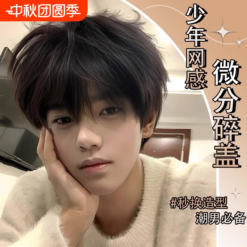 假发男士全头套式男孩学生微分碎盖短发刘海韩版帅气日常蓬松发套