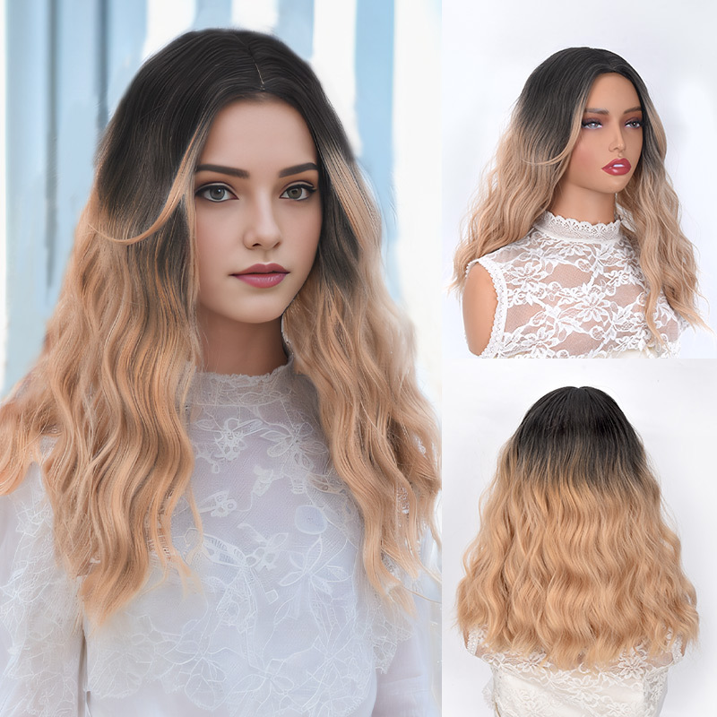 欧米の外国貿易のかつらの女性のSは縫う染色の水の波紋の茶色の黒いグラデーションの金色の頭のカバーの波の巻きの中で長い髪を縫います。