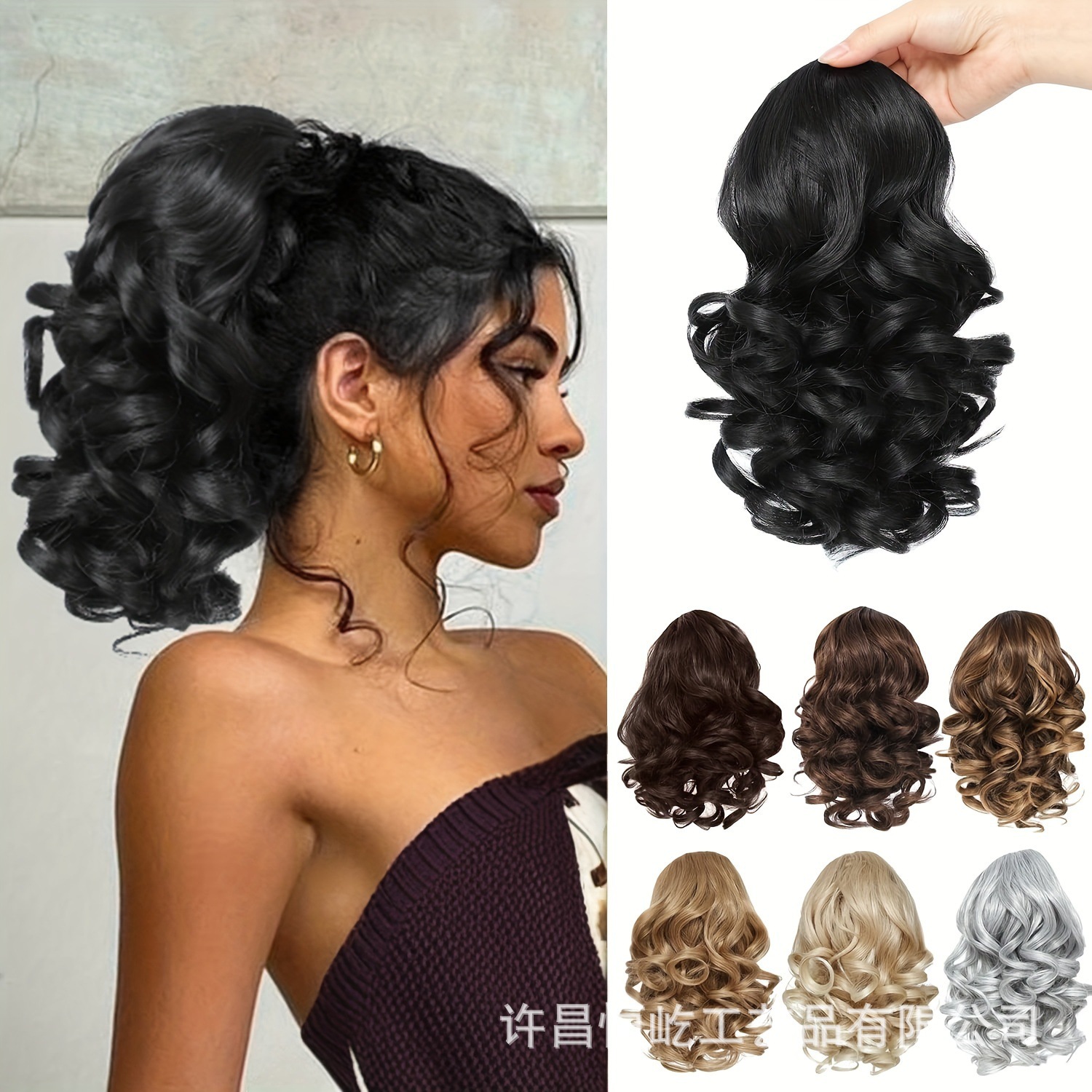 ウィッグ ドローストリング ショートポニーテール ローマンカール 自然なシミュレーション化繊合成ウェーブ 海外向けロングカール 高温耐熱ファイバーウィッグ