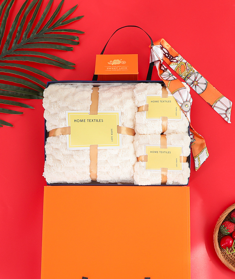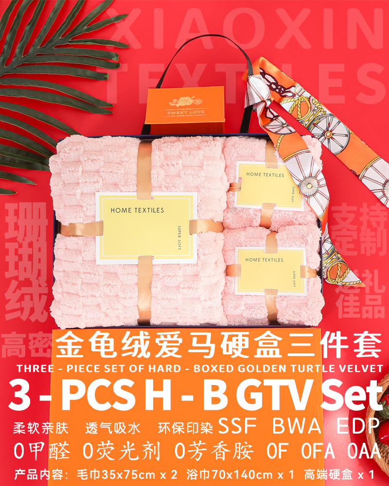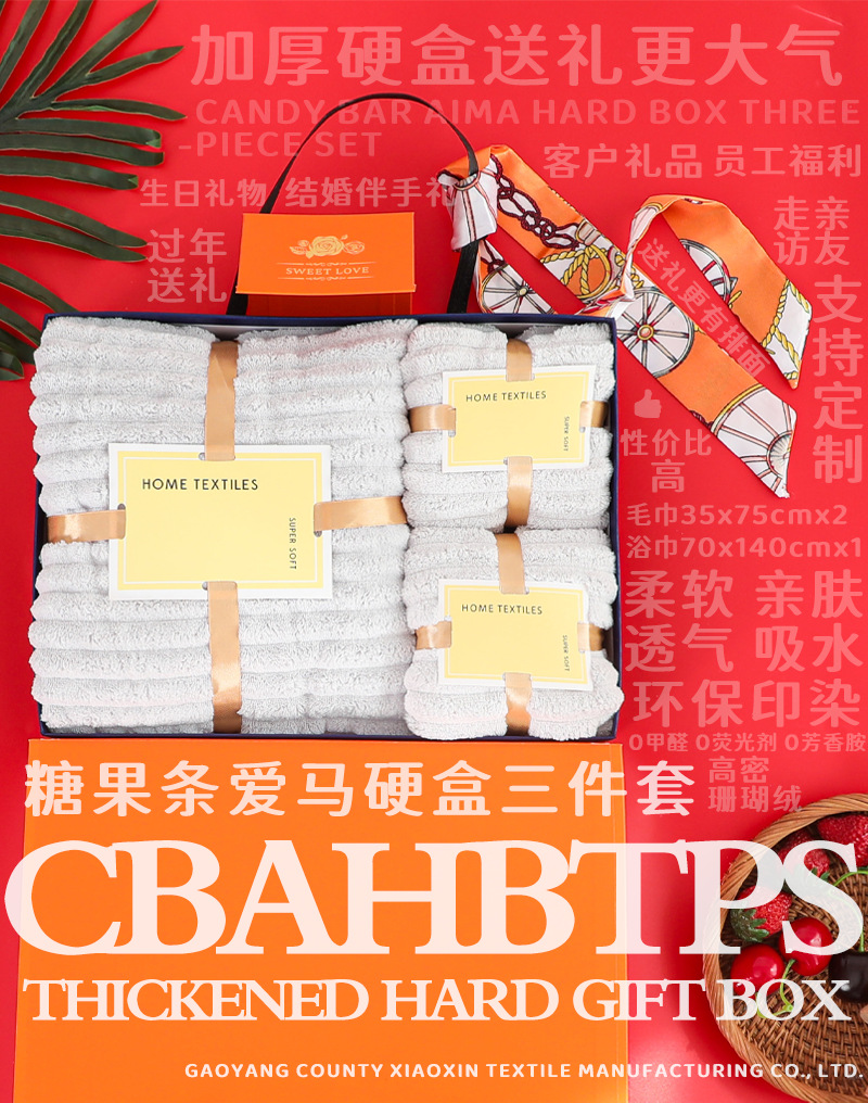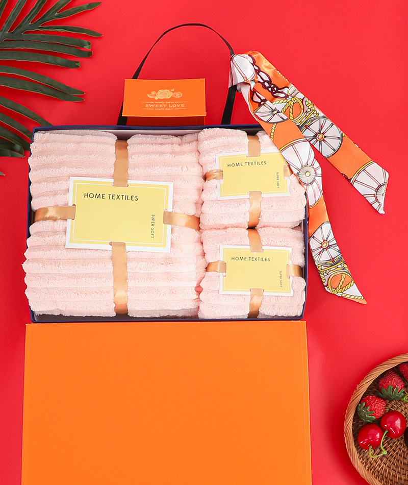 金鶏絨珊瑚絨タオルバスタオルセット3点セット結婚式記念品キャンディストリップタオルギフトボックスギフトタオル