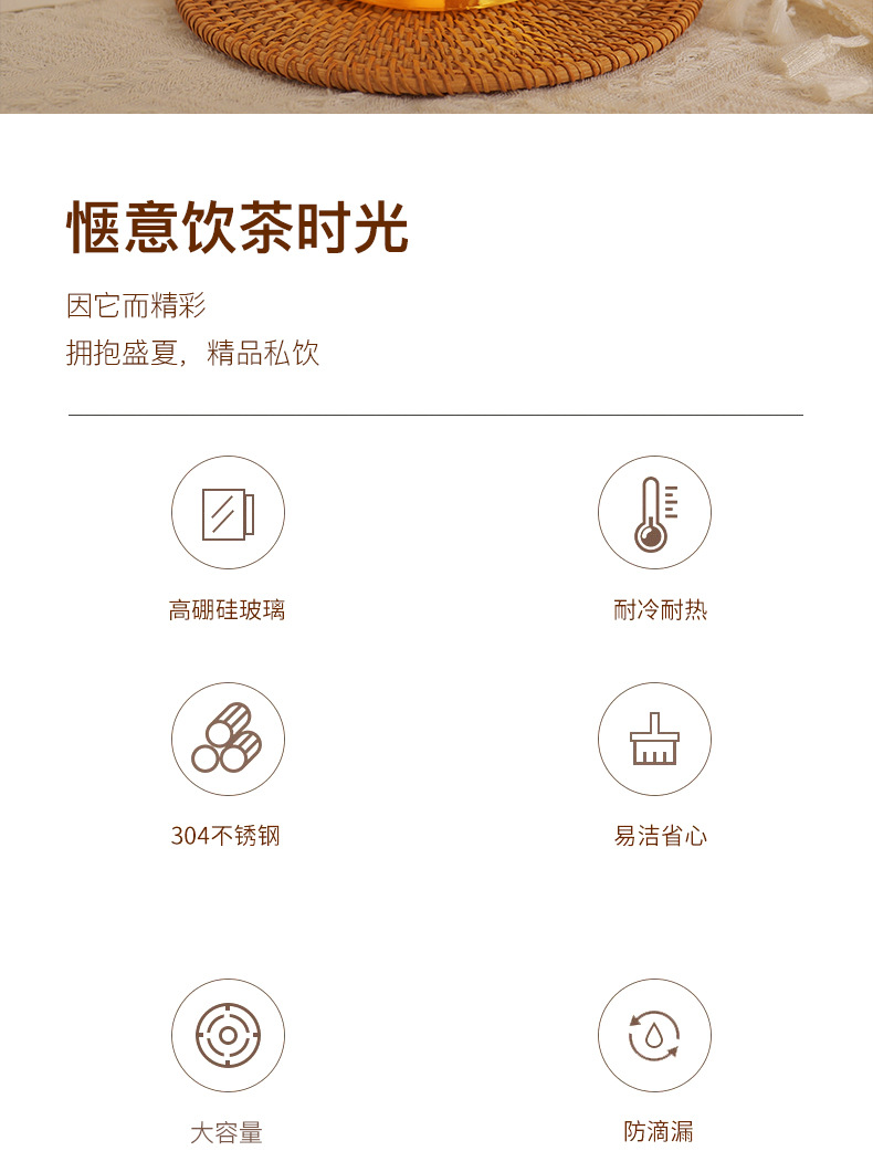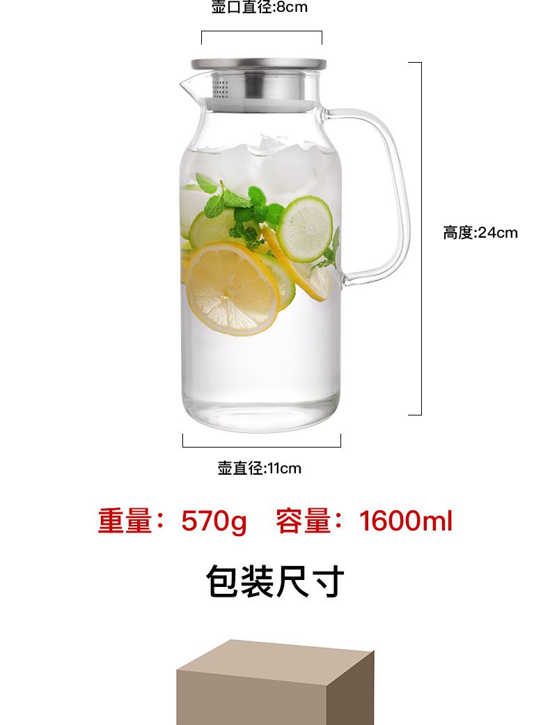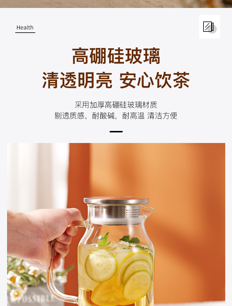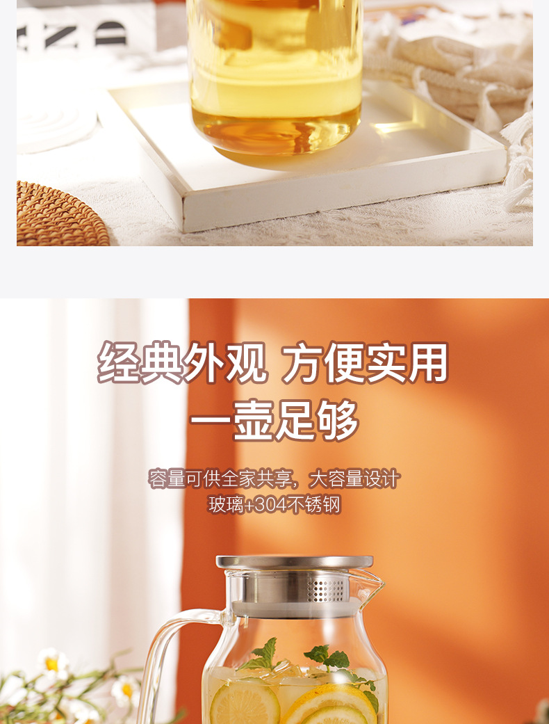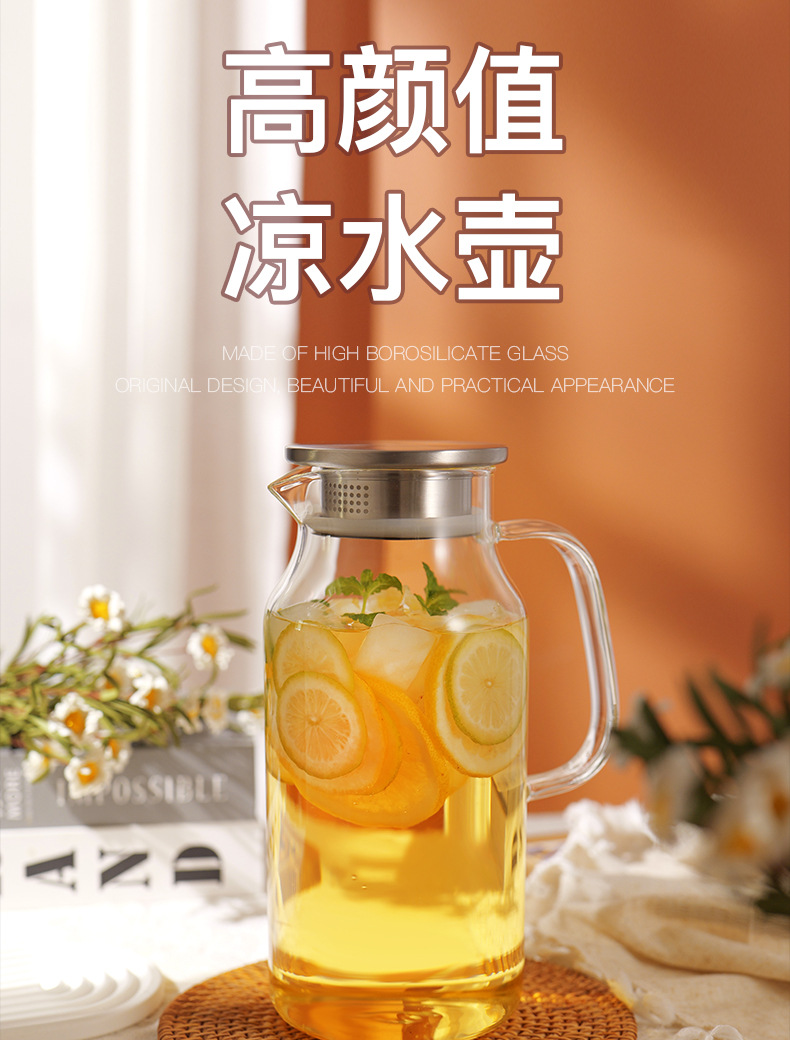 コールドケトルガラス高温耐性家庭用食品グレード高ホウケイ酸大容量水貯蔵茶ジュースカップコールドケトル