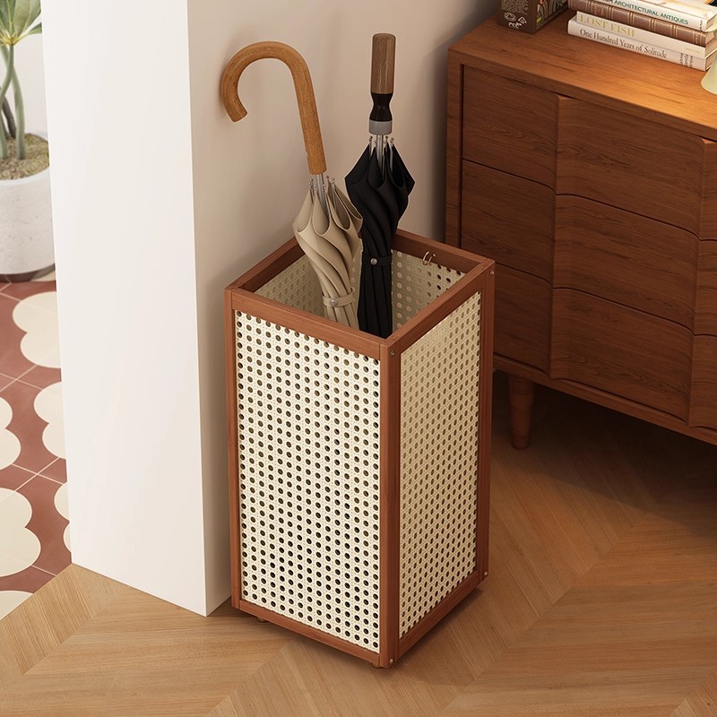雨伞收纳架家用沥水伞桶方形塑藤收纳筐门口存放架中式伞架置物架